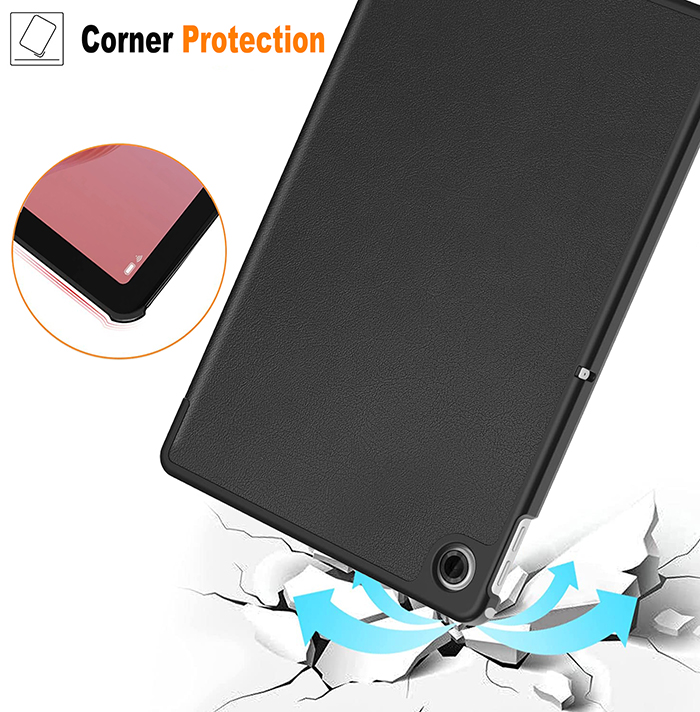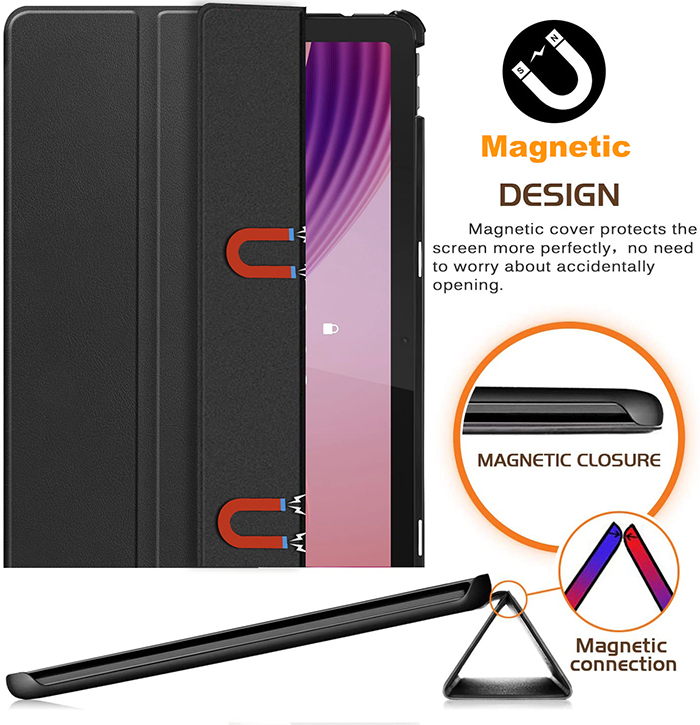 - Magnetischer Verschluss, mit der dreifach gefalteten Vorderabdeckung kann das Tablet als Ständer zum Ansehen von Videos oder als Tastaturständer genutzt werden.