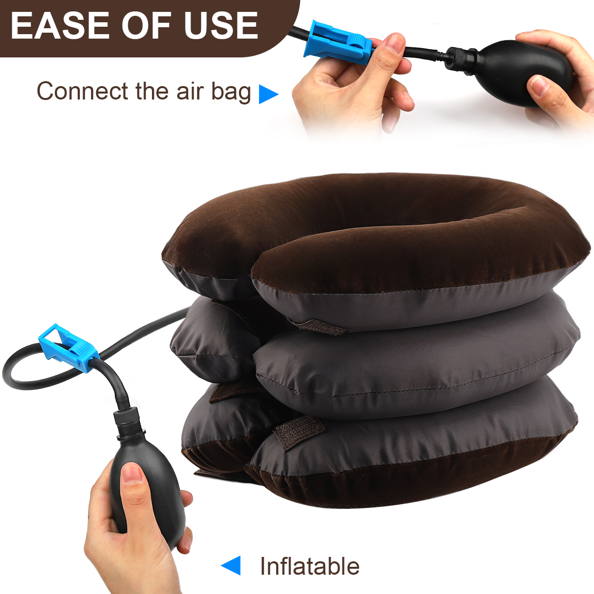 - EASY TO USE AND CARRY:Inflatable and lightweight compact design,which fits in your suitcase or backpack. You can easily enjoy the comfort of the neck traction anywhere and anytime.
