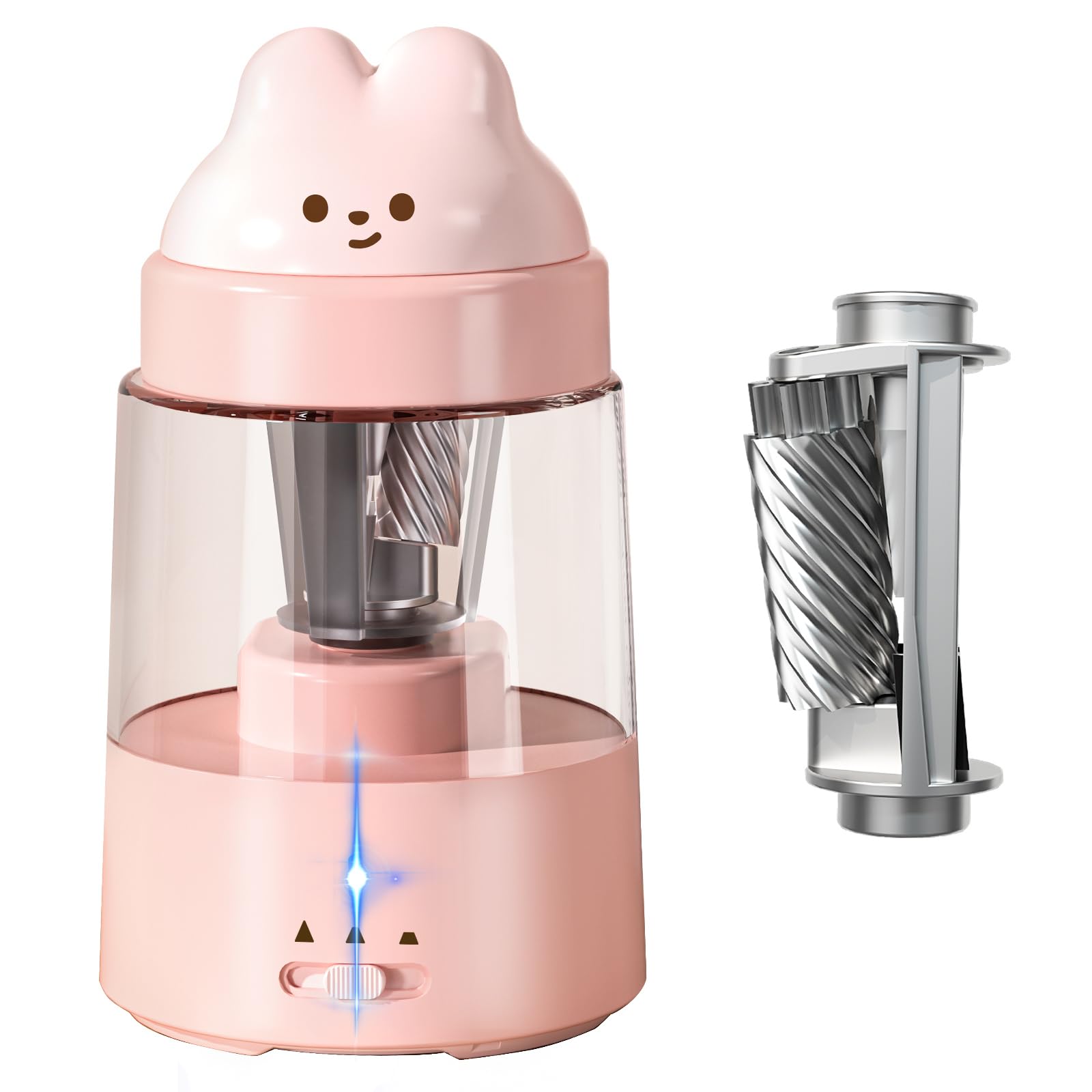 - 【Space Saving and Cute Design】This colored pencil sharpener pink rabbit shape is small and cute, small size and large capacity sharpening box reduces the number of times you have to dispose of it, and the easy to open top lid makes cleaning a breeze. The top cover can prevent pen shavings from spilling out and effectively prevent foreign objects from entering and causing stuttering problems. It fits perfectly on a small desk at school or can easily fit in a child's book bag. Be sure that no child will refuse to have such a cute gadget.
