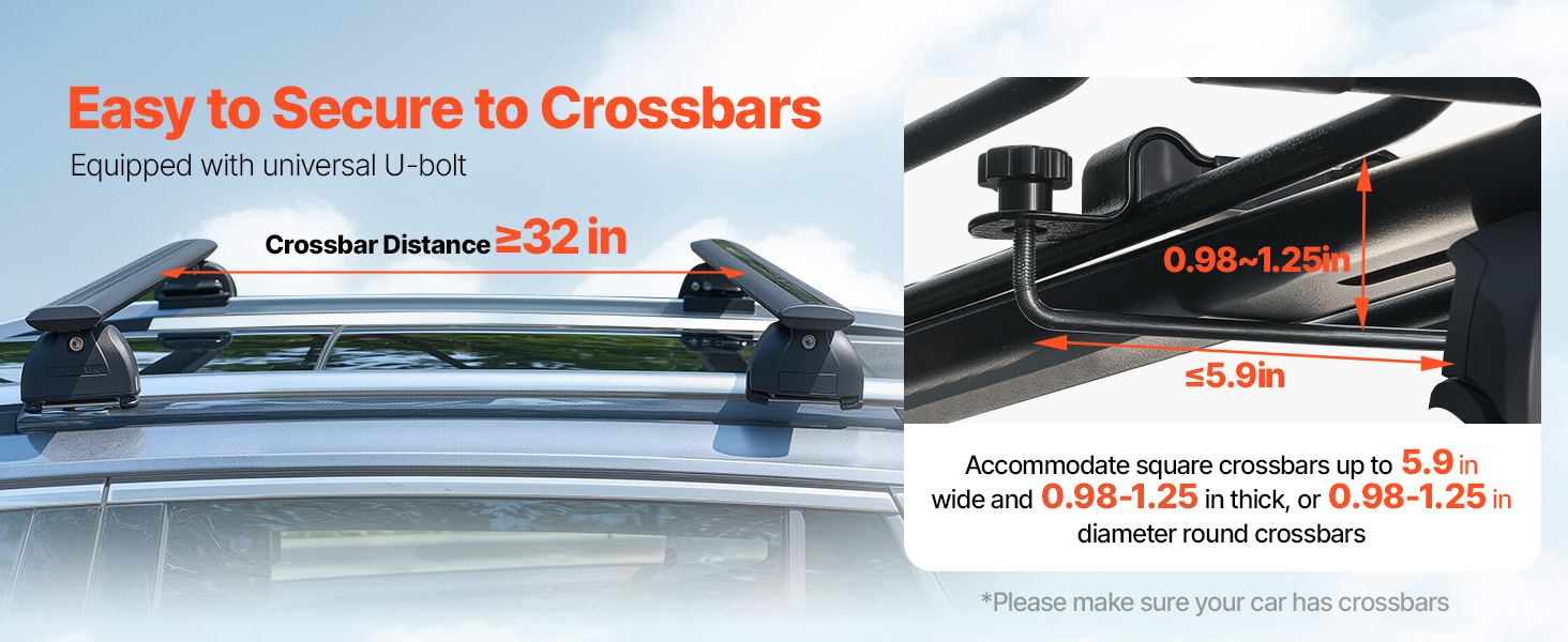 Mit vier universellen U-Bolzen ist die Montage und Demontage ein Kinderspiel. Dieser Dachgepäckträgerkorb passt problemlos auf die meisten Dachquerträger. Die mitgelieferten Schrauben ermöglichen eine einfache Montage, und die Kunststoffhülse schützt die Schrauben vor Beschädigungen.