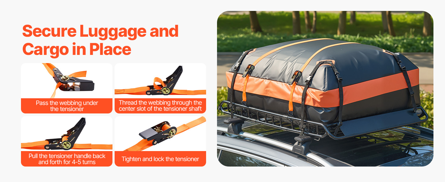 Dieses Set enthält einen Dachgepäckträgerkorb, eine Gepäcktasche und ein Dachgepäckträgernetz. So können Sie auf Ihrem Dach nicht nur mehr Gepäck und Ausrüstung transportieren, sondern auch größere oder unregelmäßig geformte Gegenstände wie Fahrräder, Paddleboards und Zelte.