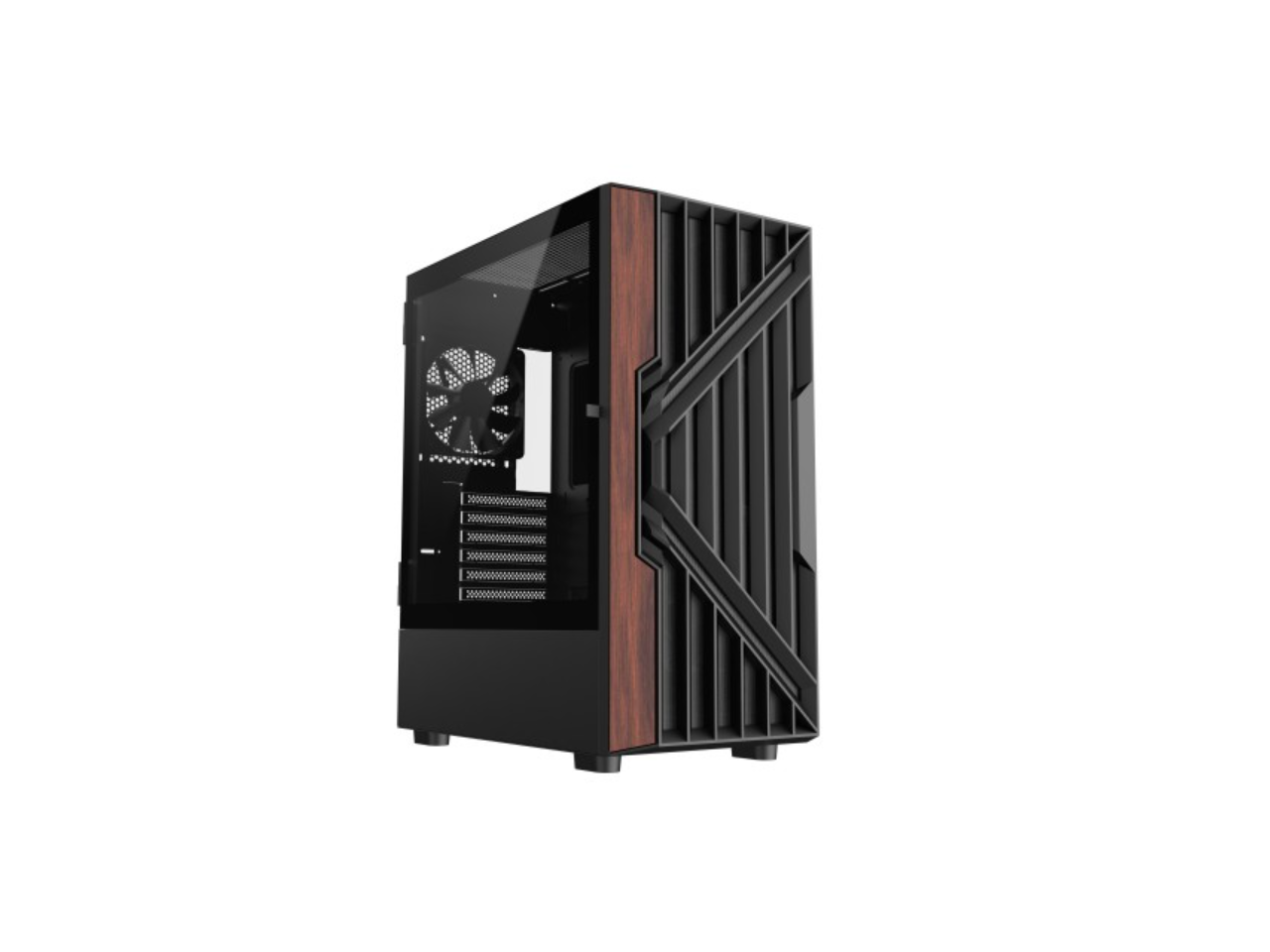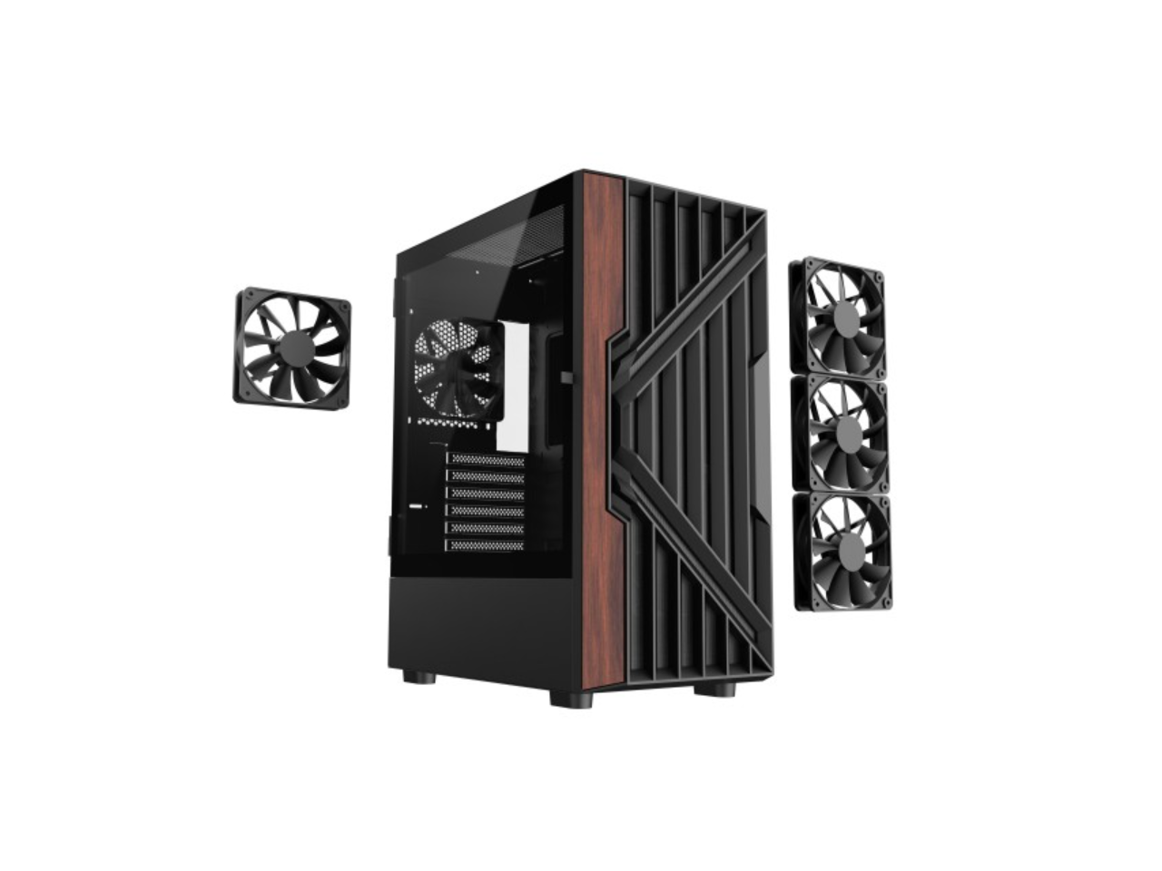 DIYPC DIY-G18-WD Black USB3.0 /Type C ATX Mid Tower Gaming Computer Case w/ Tempered Glass Side Panel and Walnut Wood Front Panel. 4 x 120mm PWM Fan Pre-Installed