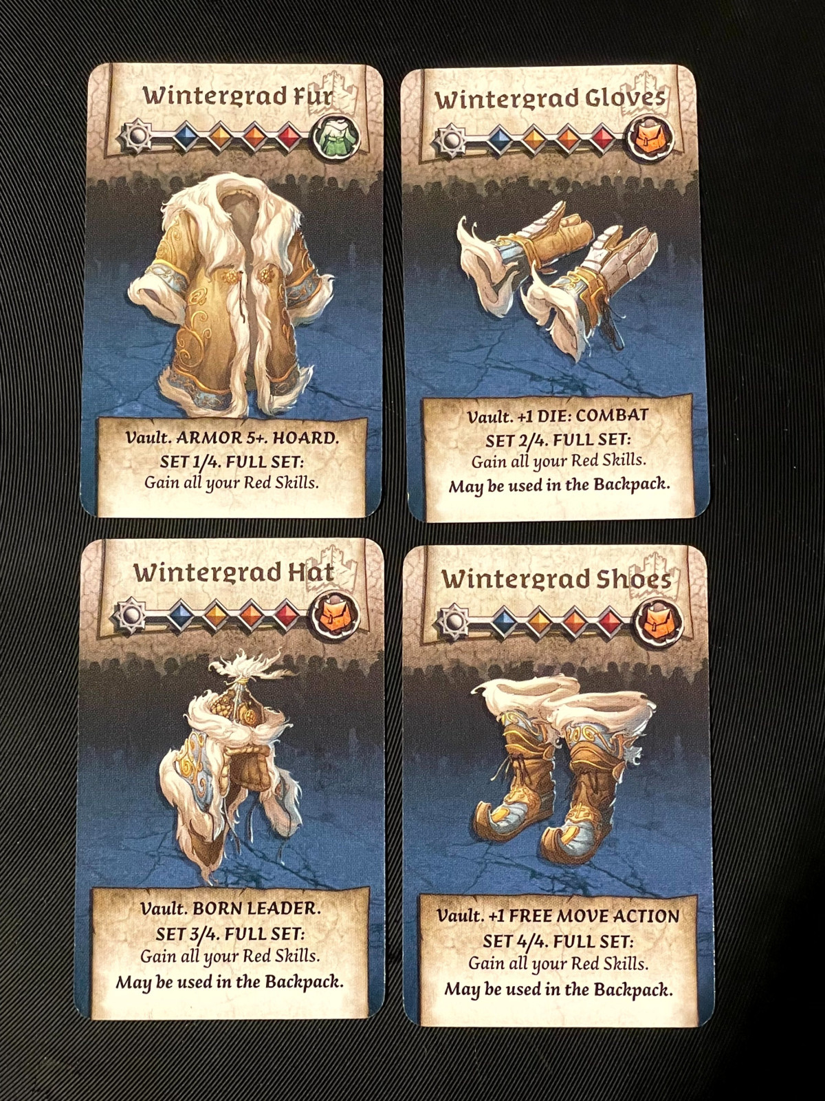 Zombicide White Death - 4 Wintergrad Vault Equipment Cards - Kickstarter exclusive