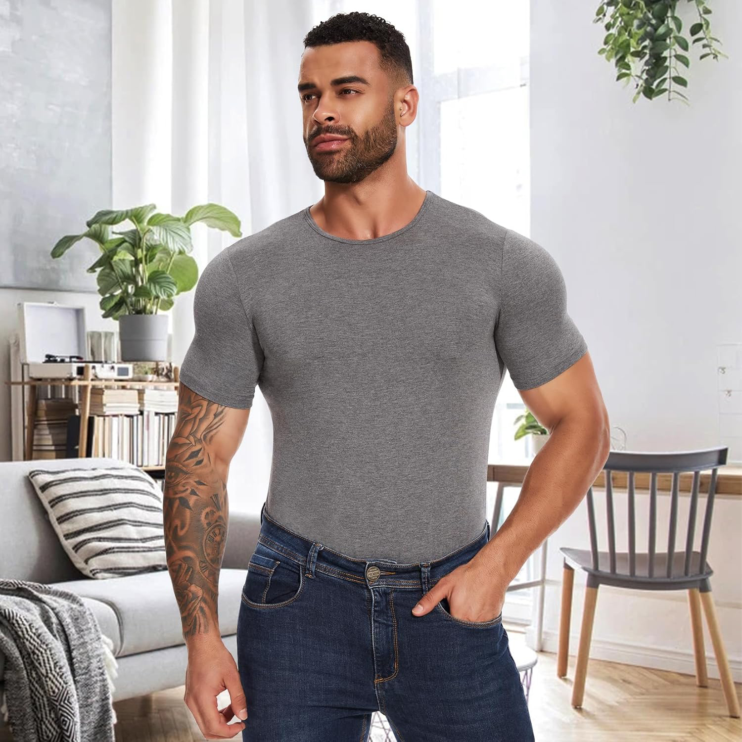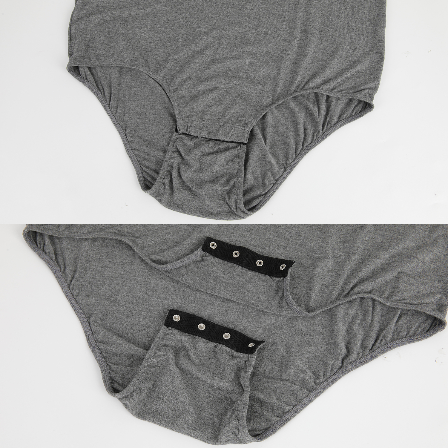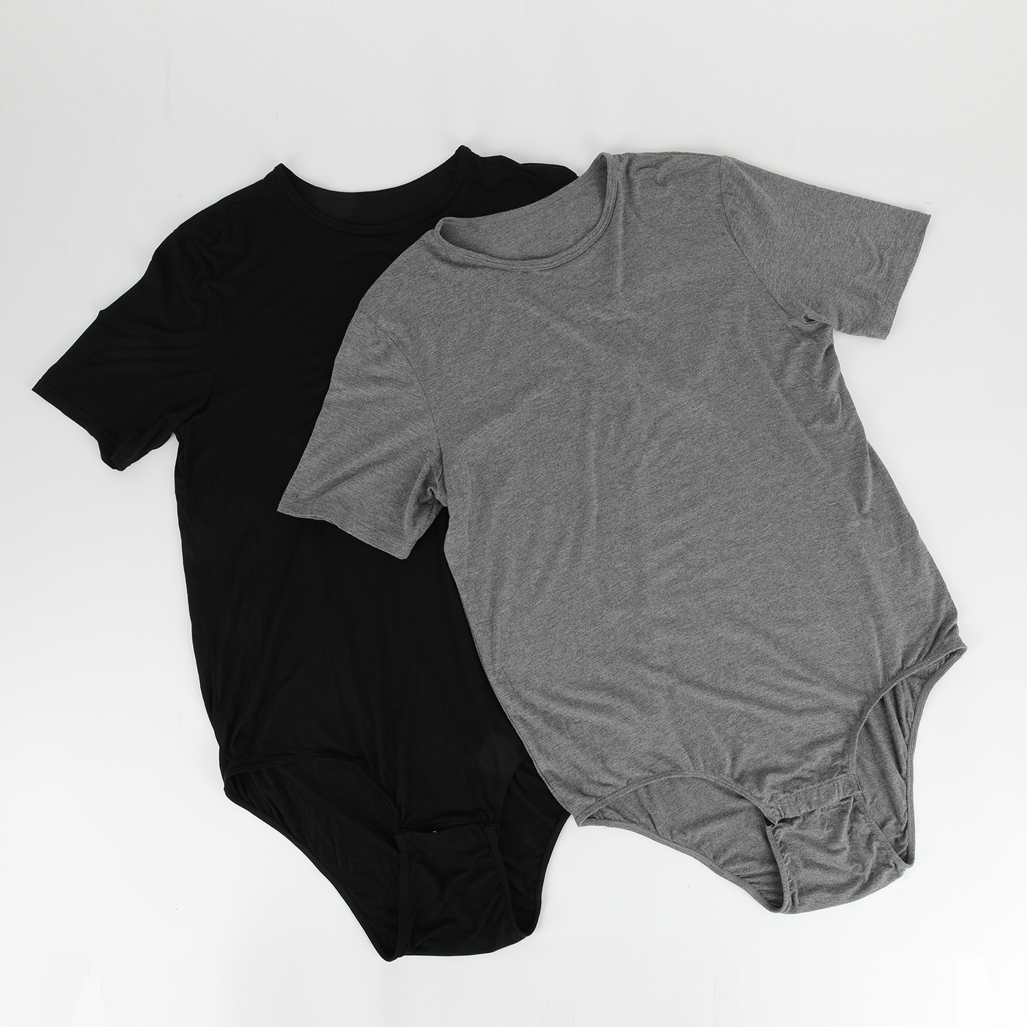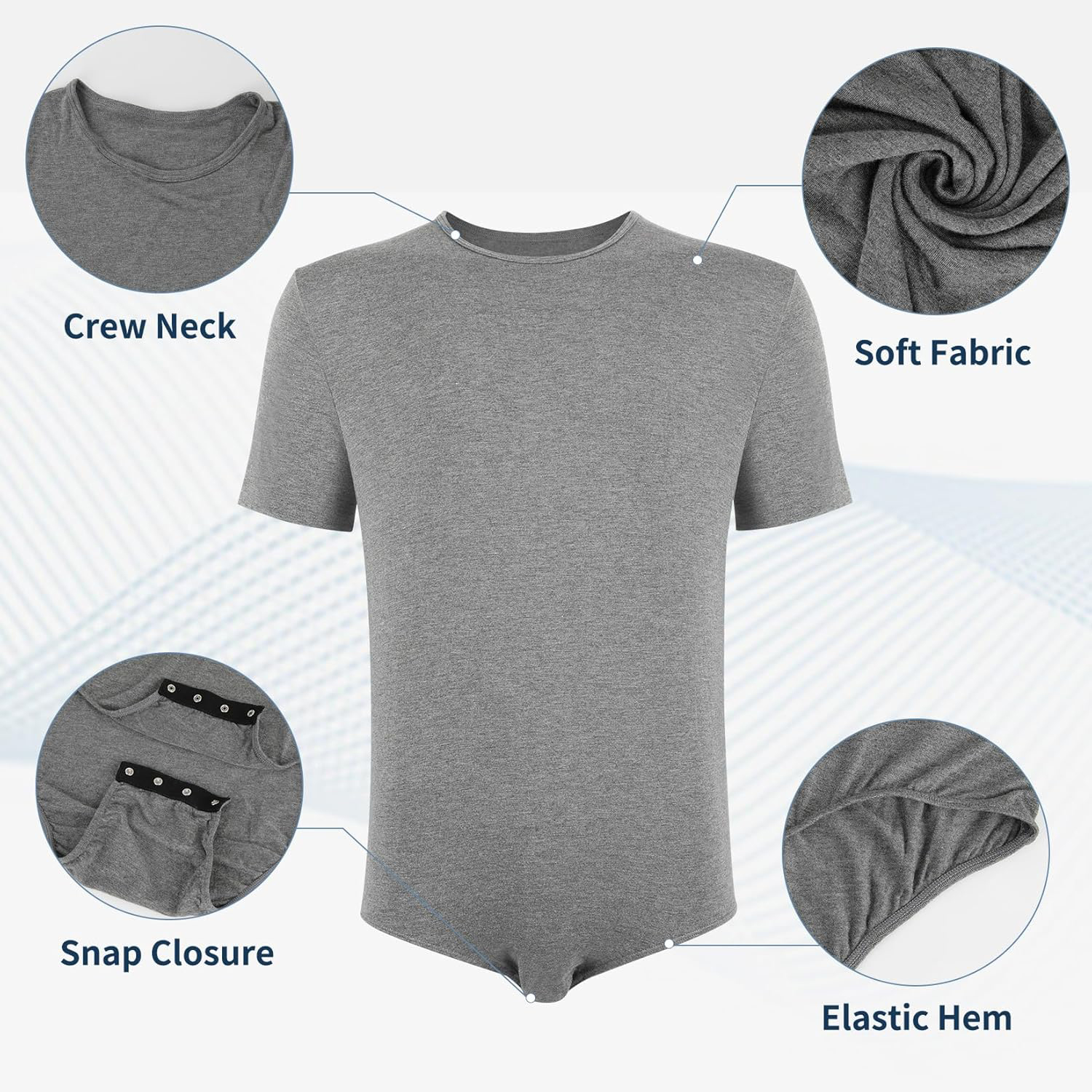 Mens short sleeve romper t-shirt pajama top, one piece leotard bodysuit design, with snap button at crotch, easy for put on or take off. Classic round neck design, make you look more energetic.