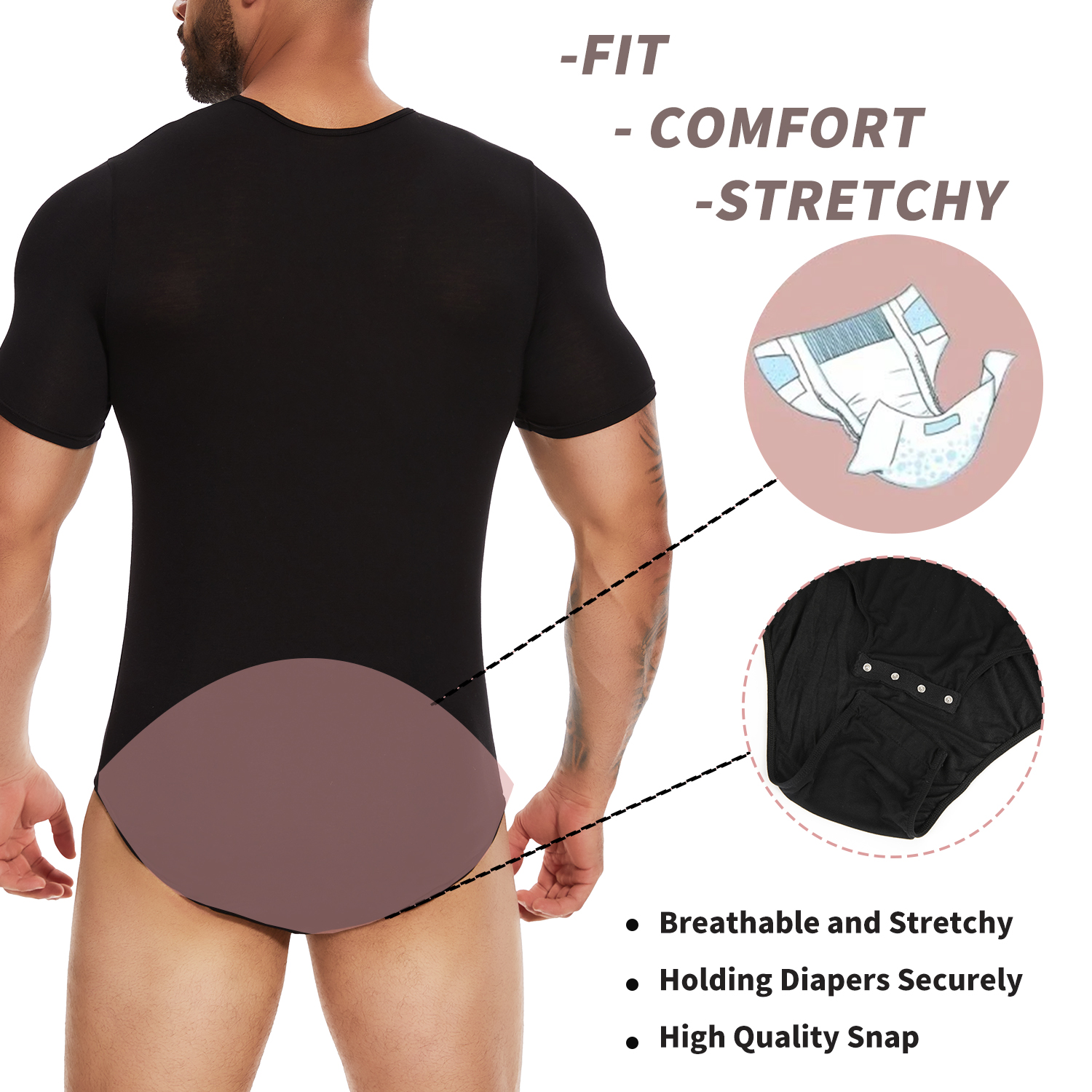 Material: 95%Viscose + 5%Spandex. Men's baby diaper pajama bodysuit, made of soft and stretchy fabric, bodycon fit but not too tight, offers you very comfortable wearing experience. Durable fabric for maximum support , perfect for sleep in, nightwear clothes.