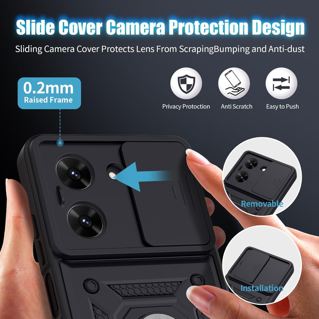 · Sliding camera protection design: Unique camera slide design, sliding smoothly. Just swipe left and right to protect/use the camera lens. No need to use an additional lens protector.