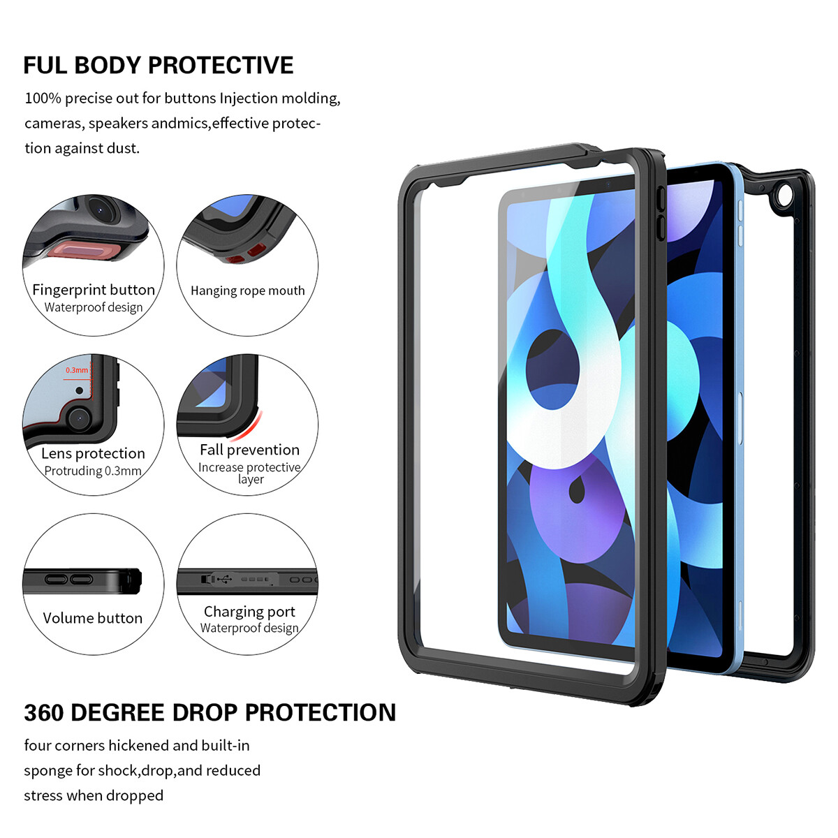 Waterproof: IP68 certified, fully body sealed design enables iPad submerge to underwater 6.6 feet for 30 minutes without any water damage