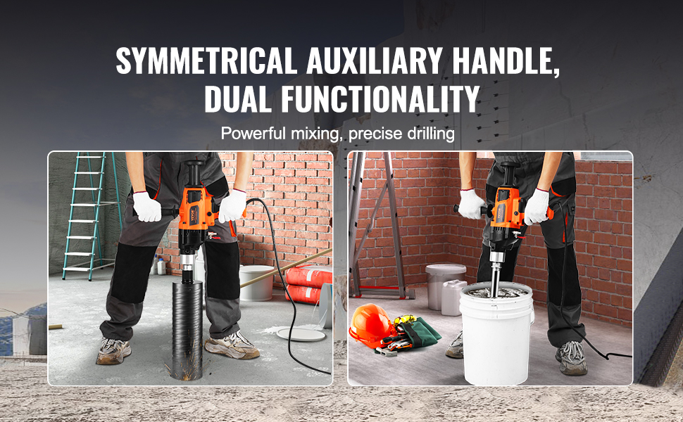 Vielseitig & multifunktional: Ob präzises Bohren oder Mischen von Zement, Farbe oder Kleber, diese Bohrmaschine erledigt alles mit Leichtigkeit. Der symmetrische Zusatzhandgriff sorgt auch bei längerem Einsatz für Komfort und Stabilität. Schnelles Umschalten zwischen verschiedenen Modi für eine Vielzahl von Bauarbeiten.