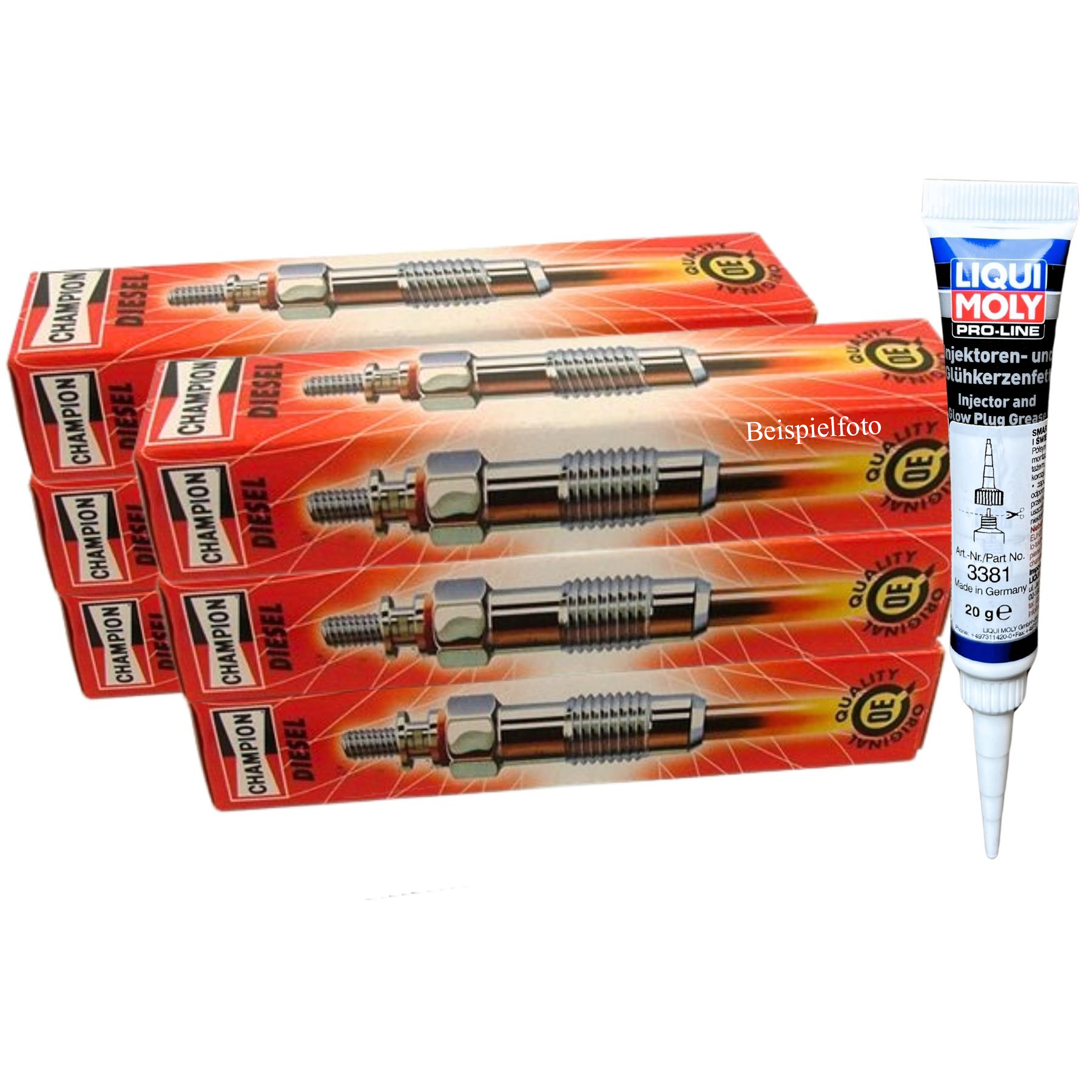 6 Stk. CHAMPION (CH252/002) Glühkerze 1 Stk. LIQUI MOLY (3381) Pro-Line Injektoren und Glühkerzenfett Montagefett Schmierung 20g Gewicht [kg]: 20 kg Gebindeart: Tube