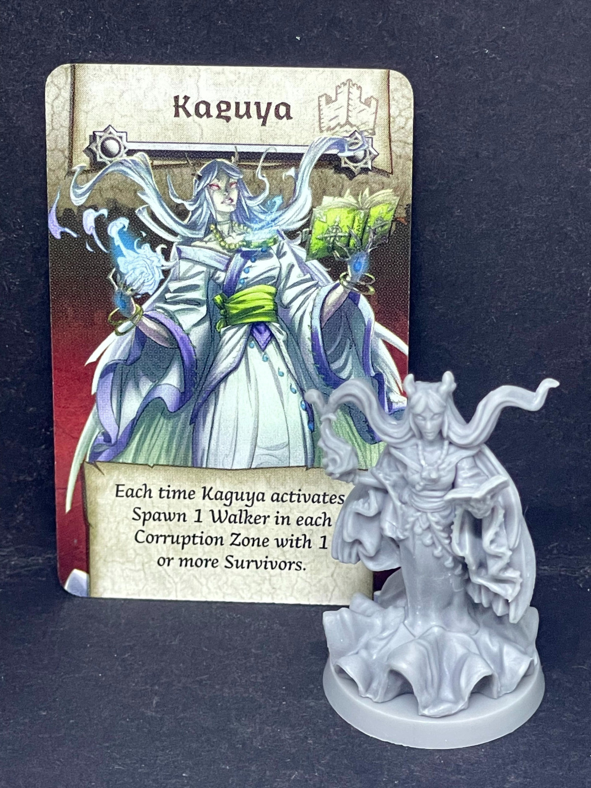 Kaguya Necromancer figure (including game card in English) from the Frozen Fortress Kickstarter Stretch Goals box for Zombicide White Death / Black Plague / Green Horde