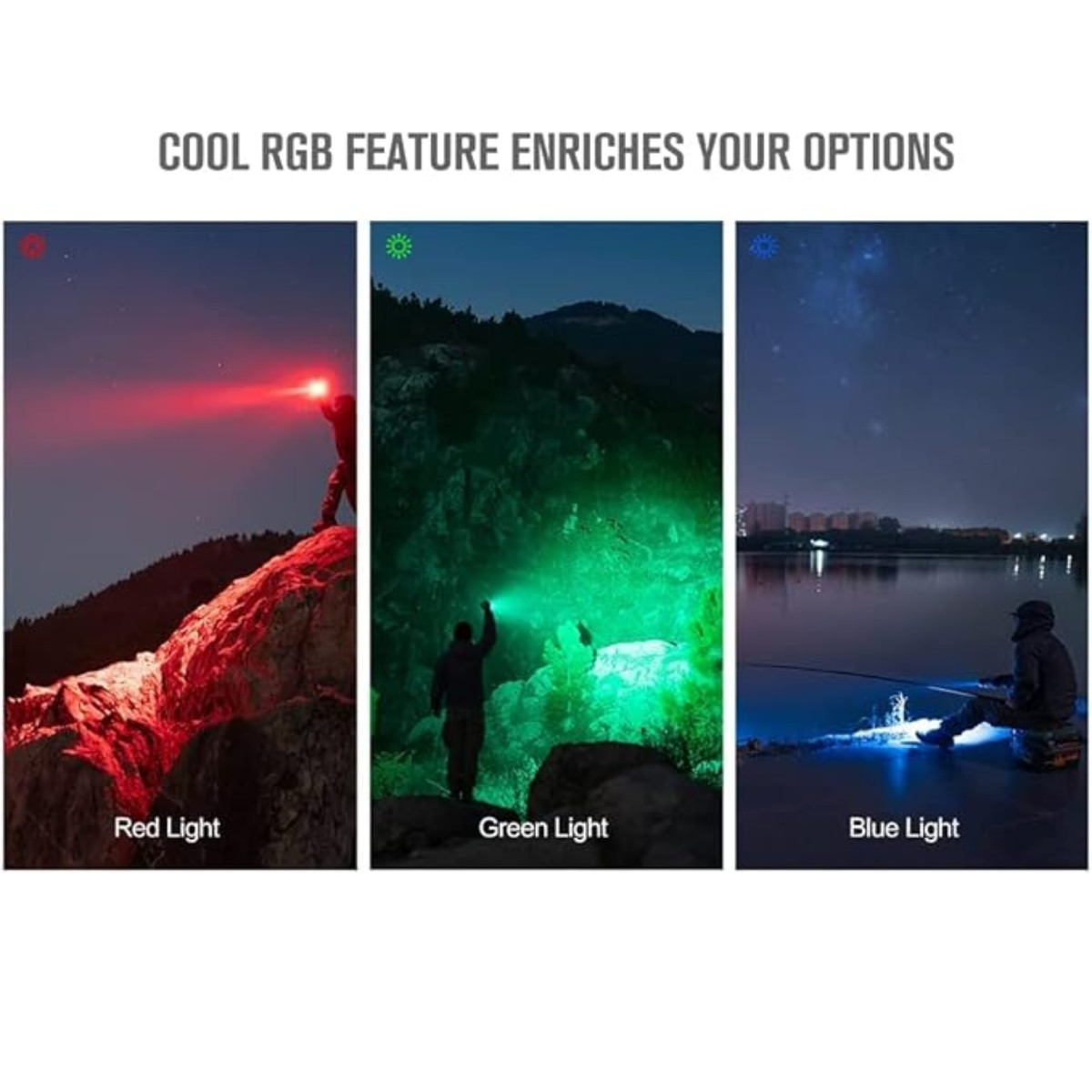 Don't let the size fool you-the Marauder Mini packs serious punch. This compact powerhouse is a dual-beam LED flashlight offering both flood and throw modes, with a max output of 7,000 lumens and a 600-meter spotlight beam. Inspired by the Marauder 2's advanced lens design, it features nine flood LEDs surrounding a central spotlight LED, plus three RGB LEDs for red, green, and blue light options. A central toggle switch lets you instantly switch between beam types, while a rotary dial offers smooth brightness control. Surrounding indicators display brightness, battery level, and RGB mode at a glance. With thermal regulation, a grippy silicone-wrapped body, and a rechargeable 24Wh battery, the Marauder Mini is engineered for comfort, control, and serious performance-perfect for rescue missions, night hunting, and any outdoor adventure where reliability matters.