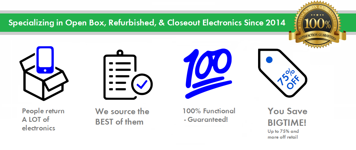 We've specialized in open box, refurbished, and closeout electronics for over 10 years. Everything we do is about making sure our customers are delighted with our deals and service. We work super hard to make sure our customers are 100% satisfied and that our selection and products are top notch. Happy Ebaying!