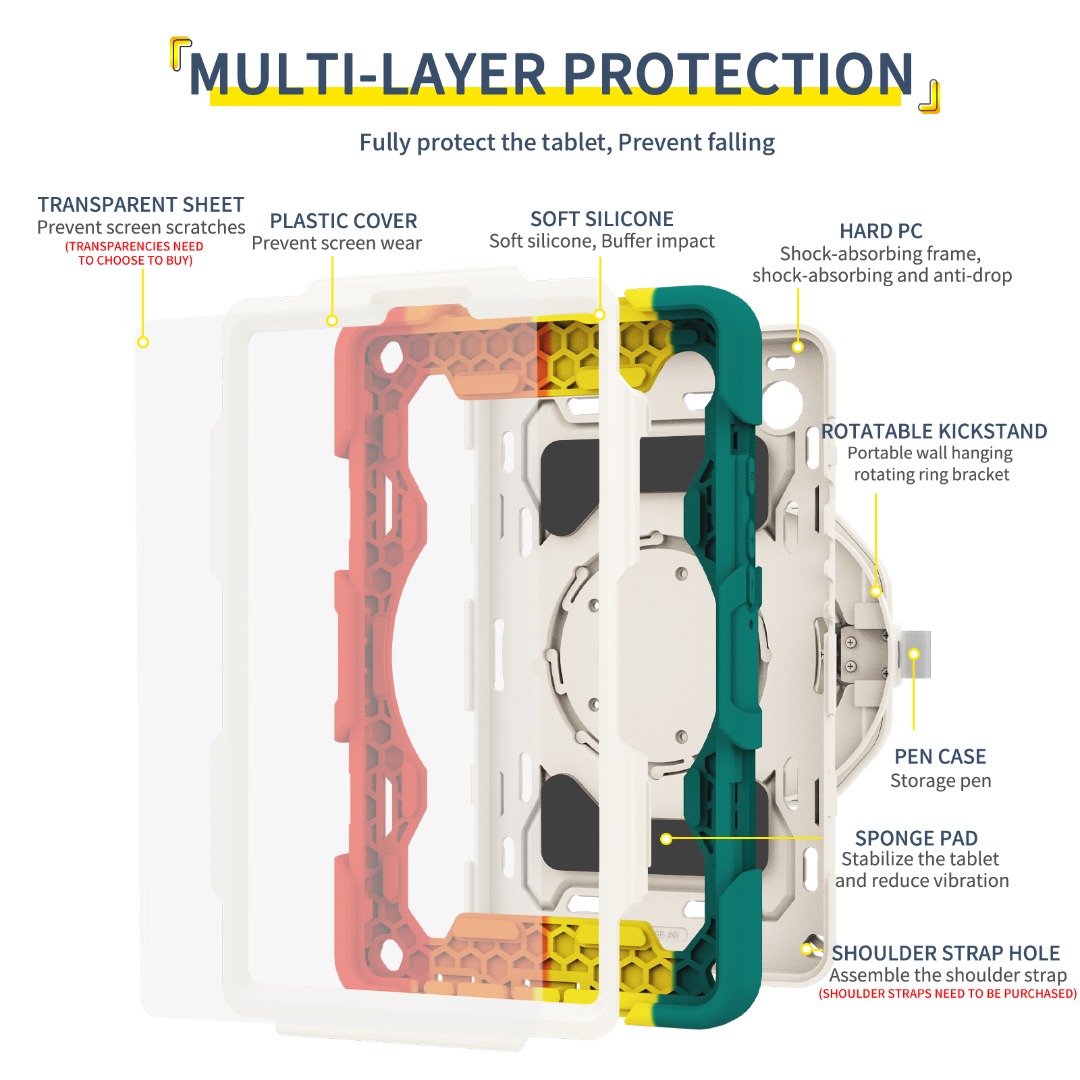 • Soft airbag tpu pack hard back cover and front frame bumper together to cover tablet fully for providing better thickness and support, comprehensive protection for the screen