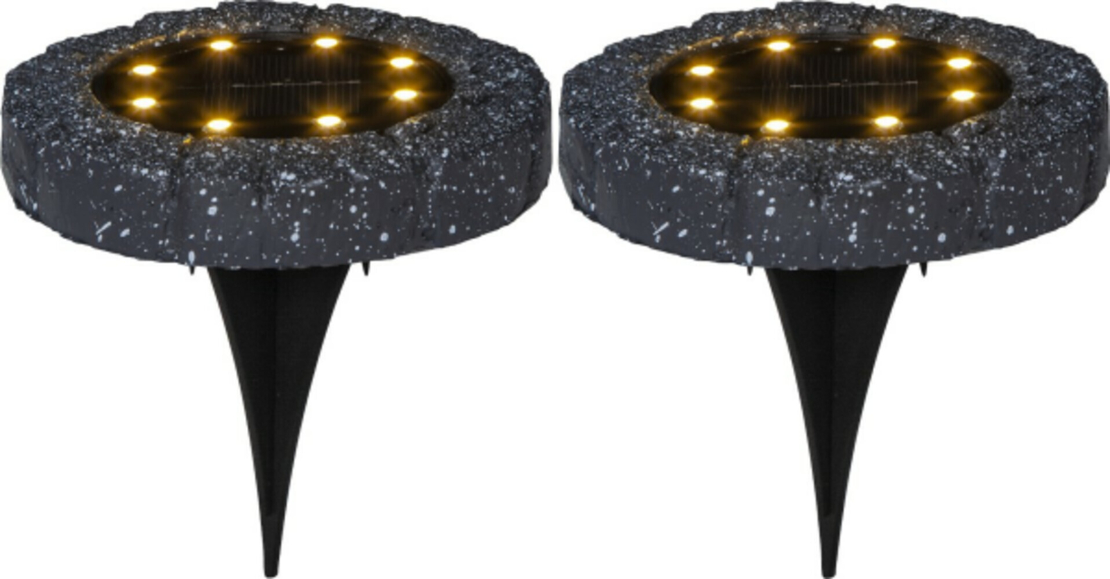 Sofort Kauf STAR 2er Set schwarz LED Solar Rasen Boden Garten Wege Leuchte Erdspieß Ø 11 cm