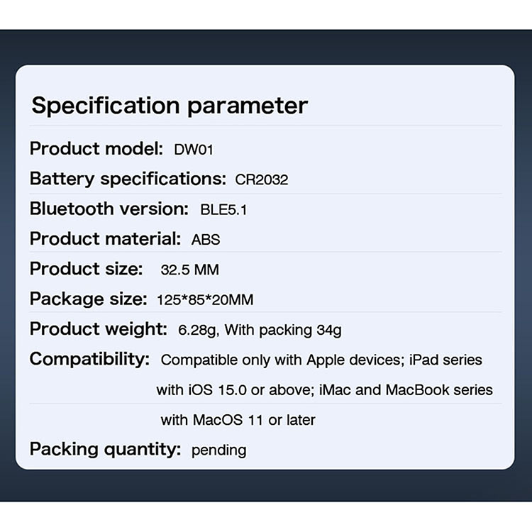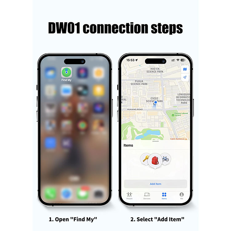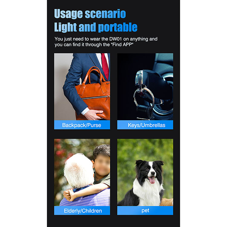 l Portable and lightweight, just wear DW01 on anything, you can find it through the finding APP, you can easily track all kinds of items