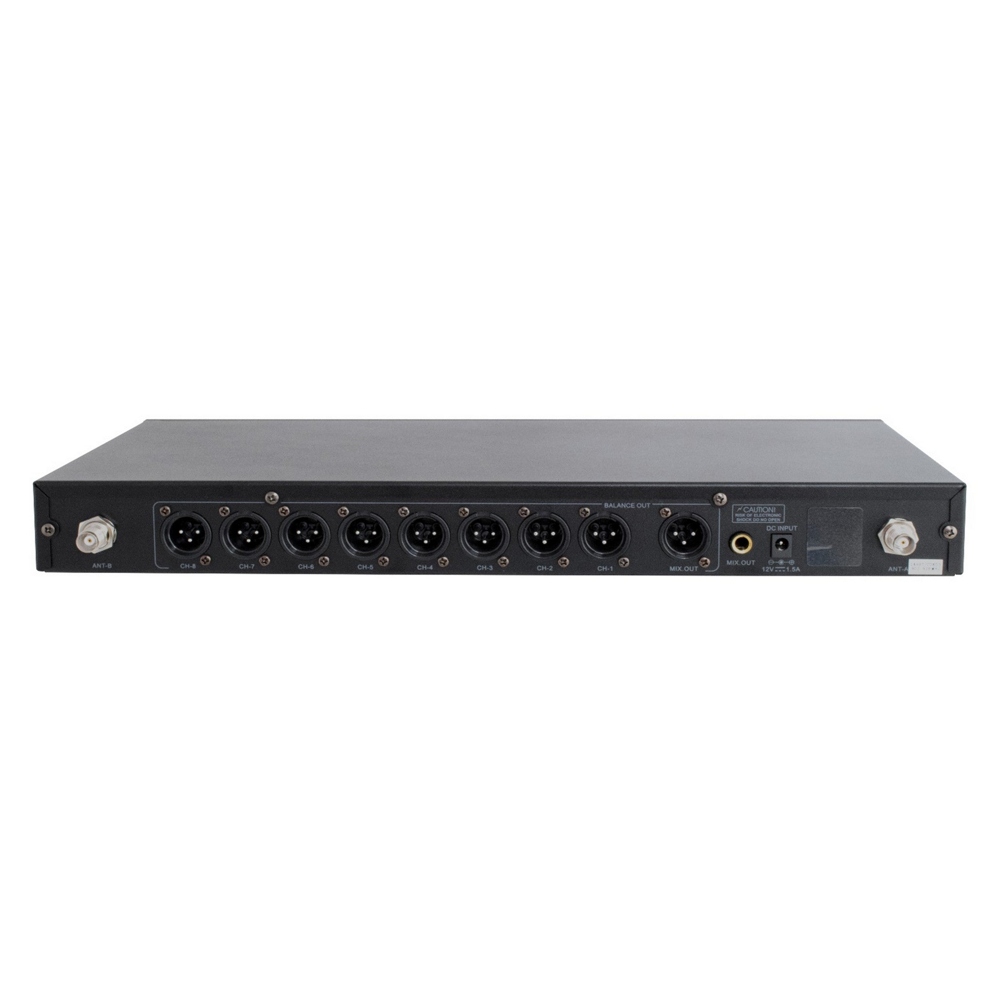 Eight-user PLL digital wireless receiver, the system guarantees dependable and interference-free operation. It includes two wireless conference microphones, which are perfect for use at podiums and lecterns, alongside four wireless handheld microphones suited for singers, speakers, and performers.