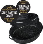 Granite Ware is made by fusing porcelain to a Steel core at 1500°F. The Steel core provides strength and even heat distribution while the porcelain Surface is inert and naturally nonstick. Porcelain is all natural and will not alter the color, taste or nutritional value of your Food.