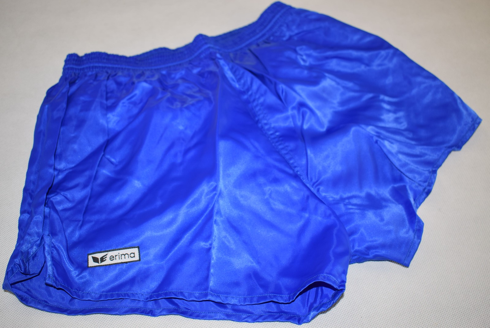 Sofort Kauf Erima Shorts Short kurze Hose Pant Vintage Sport Nylon Glanz Shiny Blau 90er 7 L