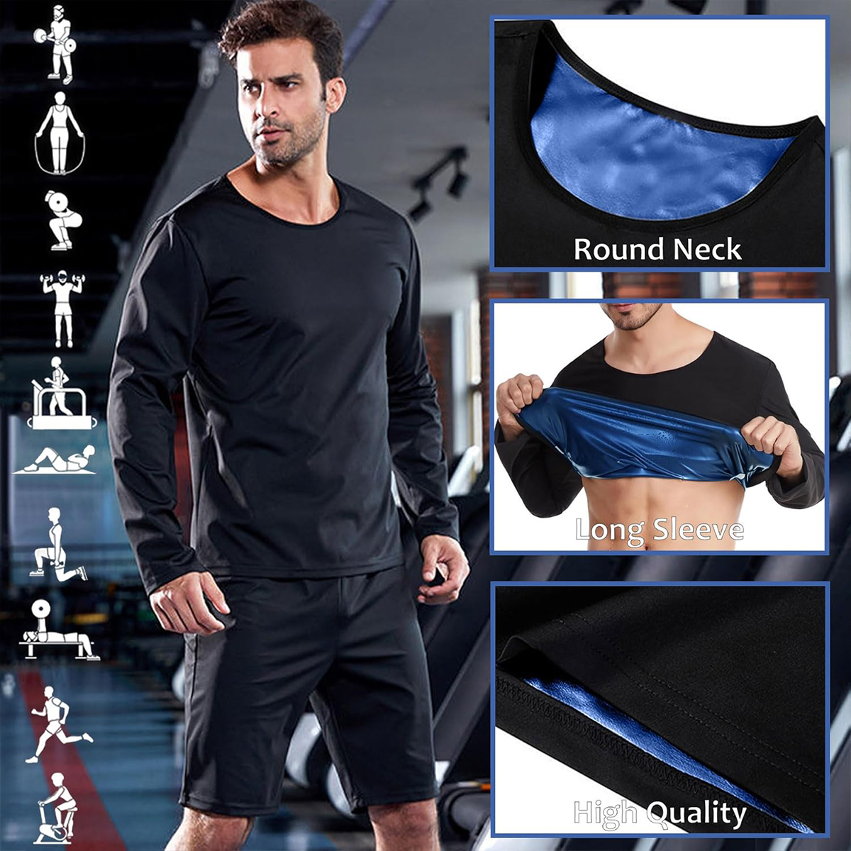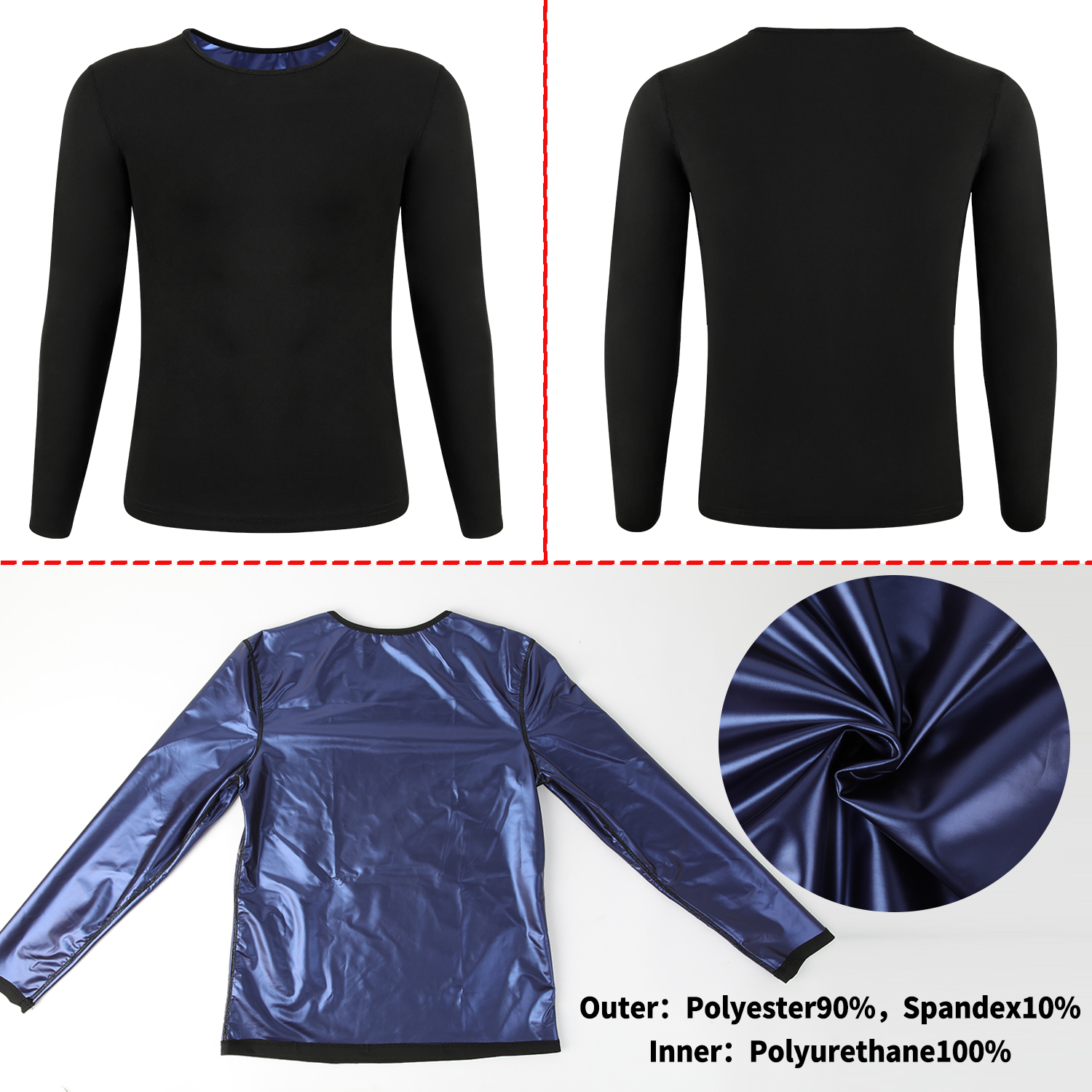 Feature Upgrade:The inner fabric of our sauna sweatshirt is designed to improve body temperature in a short time, quickly increase heat reflection and circulation, and promote sweat discharge. Increase sweat 5 times more than other sportswear, speed up the metabolic rate, and achieve a faster effect of losing weight or body shape. Sauna shirts are windproof, coldproof, and waterproof, to keep your body warm after exercise, and always dry on the outside.