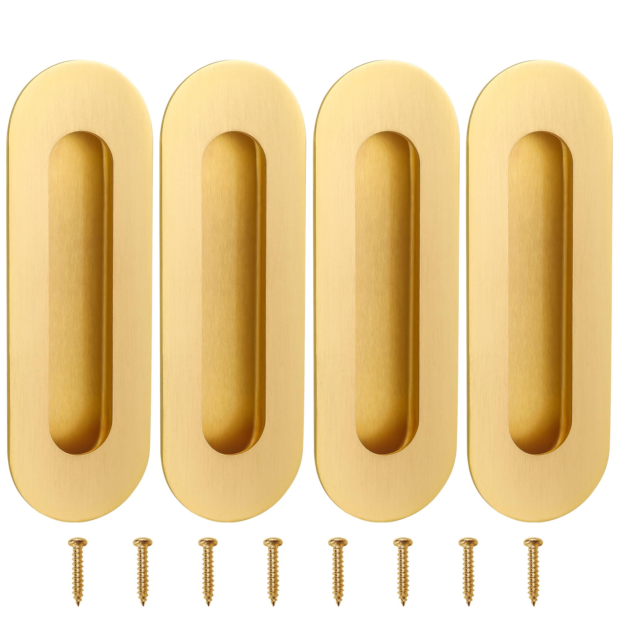 - Durable 304 Stainless Steel: The pocket door pull is made of 304 stainless steel, they are rust-proof and durable, also a good heavy duty door handle. Brushed Gold surface is more luxurious
