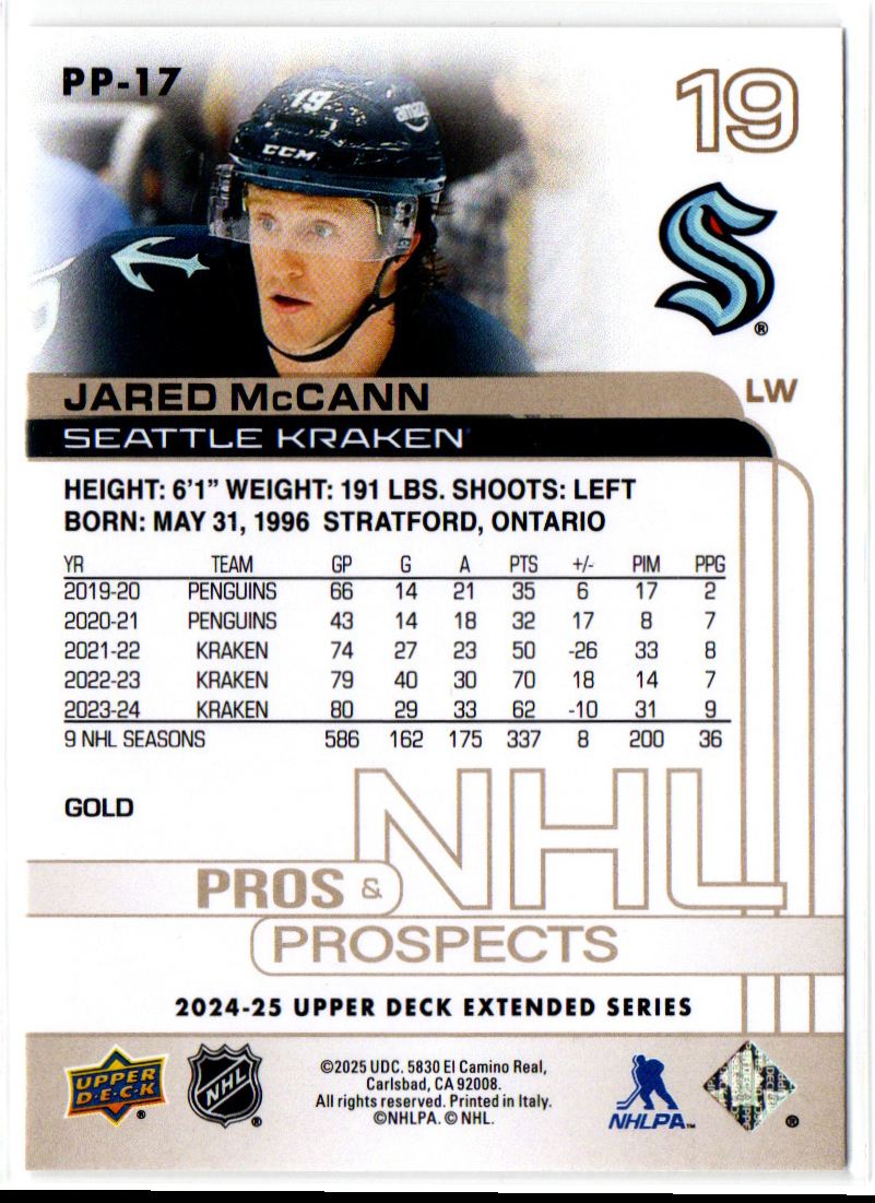 | 2024-25 Upper Deck Pros and Prospects Jared McCann Seattle Kraken #PP-17 | ||||||||||||||||