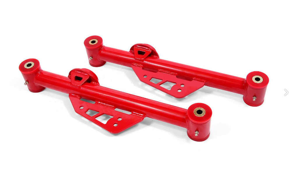 BMR Suspension's TCA014 non-adjustable polyurethane lower control arms are available in red and black hammertone powdercoat for long-lasting good looks. Installation time is about 1-2 hours. Proudly made in the U.S.A.
