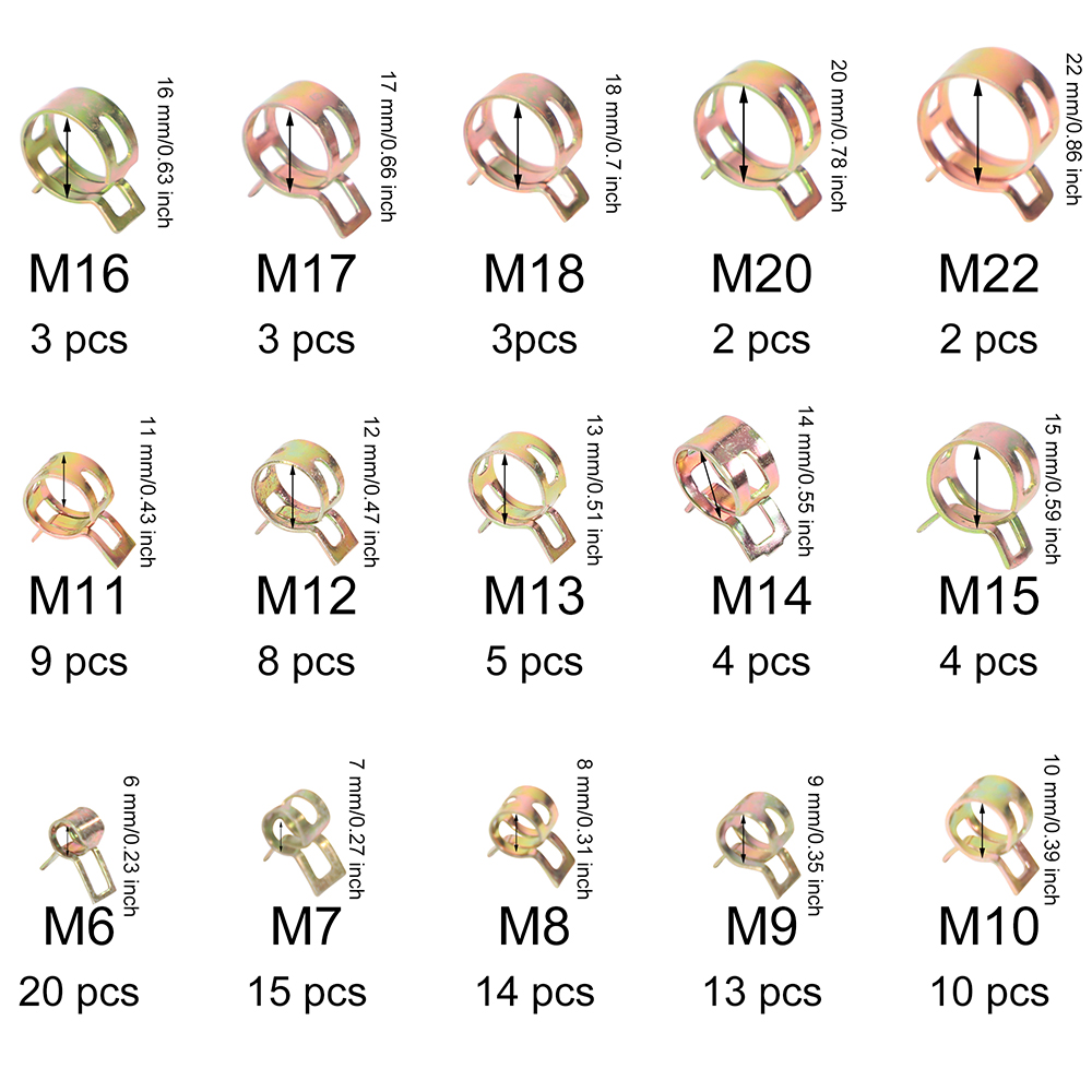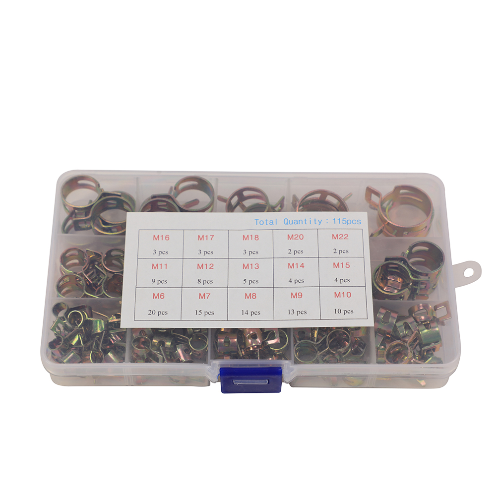 115X Hose Spring Clamps 6-22mm Fastener Fuel Water Line Pipe Air Tube Clips Kit