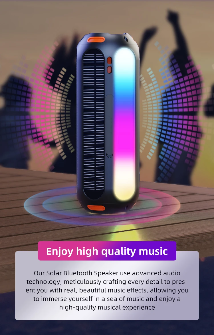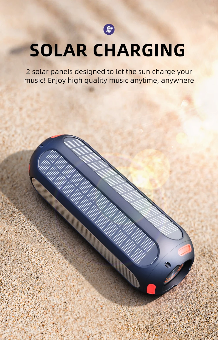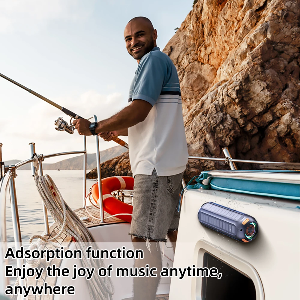 Strong Magnet & Solar Charging: The built-in strong magnet allows this magnetic Bluetooth speaker to be securely attached to golf cart frames, forklifts, refrigerators, basketball racks, and any iron areas. Equipped with 2 solar panels, this rugged magnetic speaker utilizes solar energy to keep the battery charged, ensuring uninterrupted music playback even in outdoor settings. it is ideal for golf gift, parties, pools, beach camping, travel, hiking, and outdoor workers.