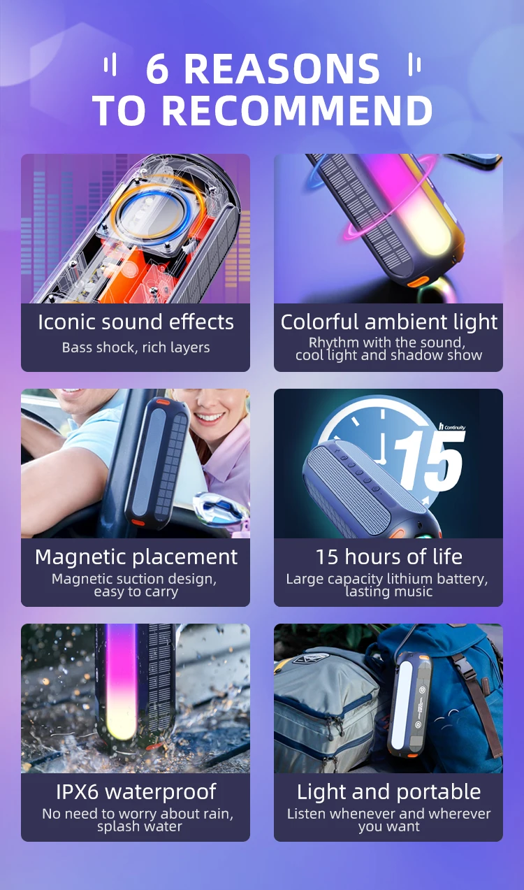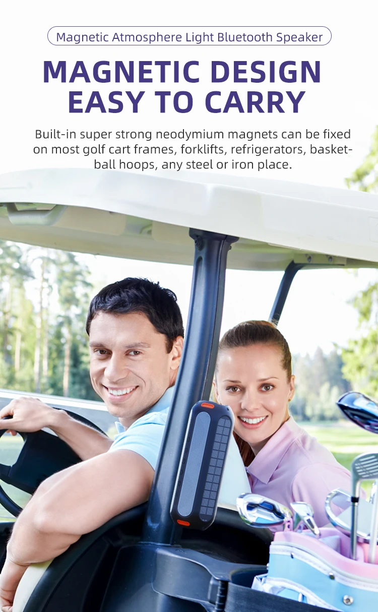 Magnetic Bluetooth Speaker with lights: Colorful light show, Equipped with seven modes of colorful lights, adding visual appeal to your auditory experience. This golf speaker not only has superb sound quality, but also creates a vibrant and exciting atmosphere. A fantastic and funny golf gift for men and golf enthusiasts.