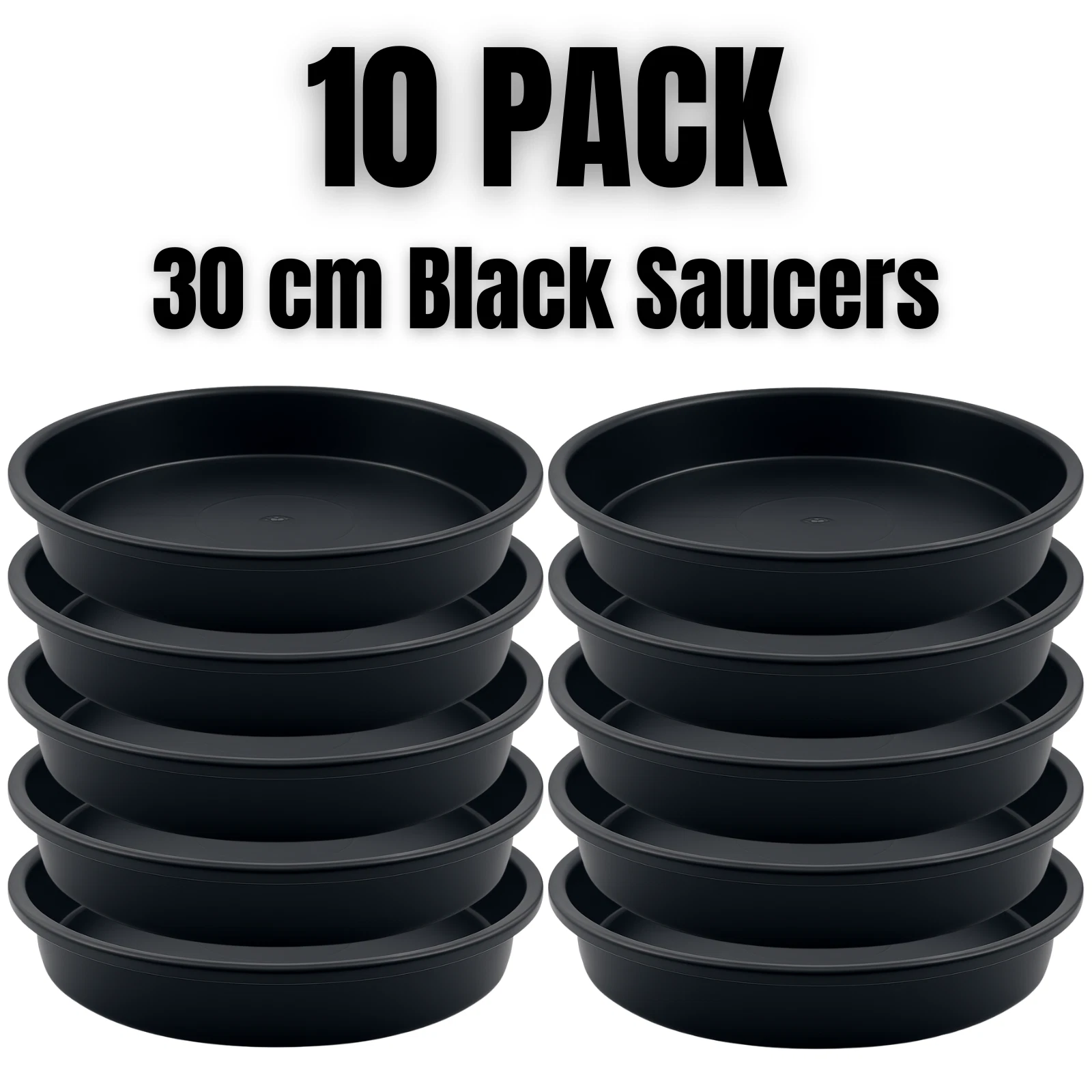 10-Pack of 30 cm Heavy Duty Black Plant Pot Saucers – For Medium Planters & Grow Bags
