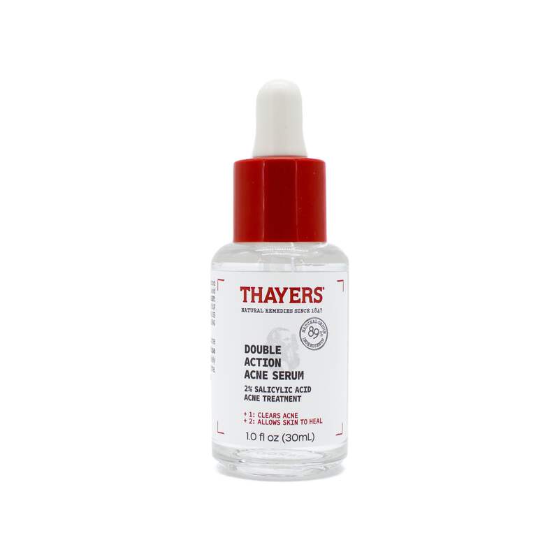 Thayers Double Action Acne Serum for face is the ultimate powerhouse for clearing and healing acne breakouts. This niacinamide serum is packed with a maximum over the counter strength 2% salicylic acid that penetrates deep into your pores, clearing acne in just 1 week. This serum’s turbo-charged trio of 4% niacinamide, 3% lactic acid, & azelaic acid smooths out rough texture, & has been clinically tested to help fade post-acne marks like a pro.