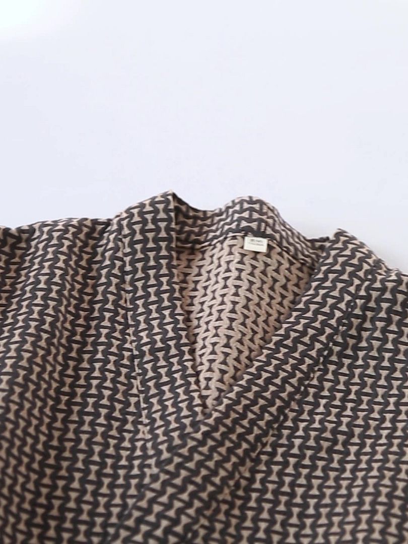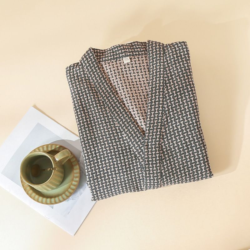 men?s kimono robe, black and beige robe, geometric pattern robe, modern Japanese robe, zigzag weave cotton robe, bold print dressing gown, breathable robe for men, housecoat with pockets, lounge robe men, artistic men?s robe, wrap robe for men, cotton kimono men, casual robe gift, boho men?s dressing gown