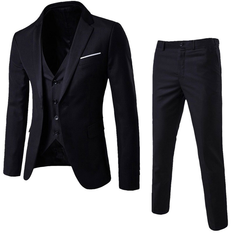 Men’s Suit Slim 3-Piece Suit Blazer Business Wedding Party Jacket Vest & Pants