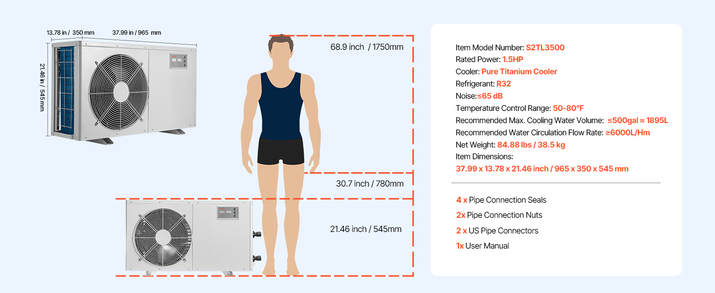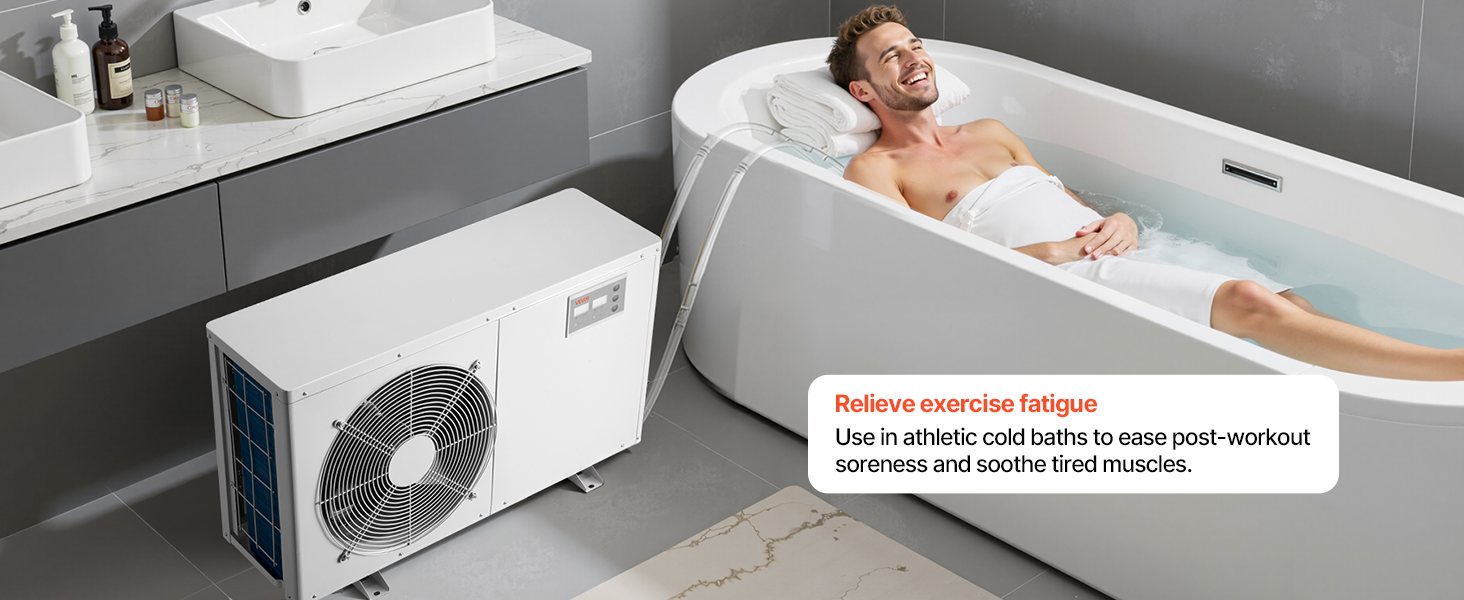 - Versatile Use: Powerful cooling effect, quickly lowering water temperature to an ideal level for cold plunge therapy, helping athletes effectively relieve fatigue and recover strength. If you have any questions, please contact us for assistance