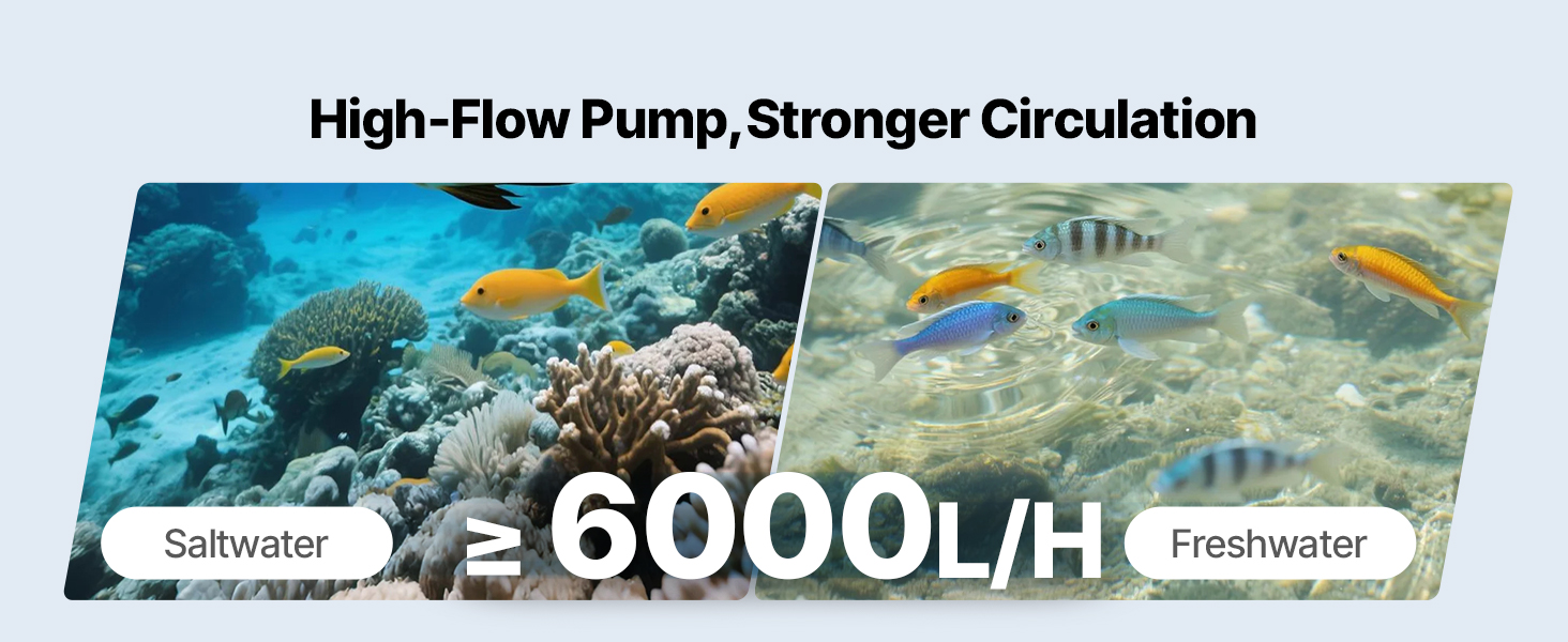 - Large Capacity: This 500Gal chiller meets the needs of various tank sizes, with a high water circulation rate of 6000L/H, keeping the tank at an ideal temperature for your fish