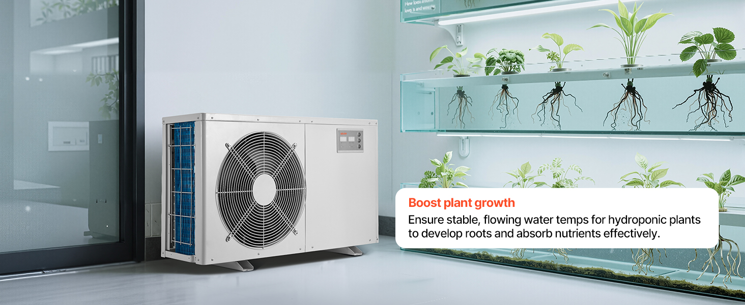 - Protecting Aquatic Life: Featuring a corrosion-resistant titanium evaporator, secure for both freshwater and saltwater conditions. Suitable for fish tanks or aquaponic systems in various locations, including homes, hotels, and aquariums