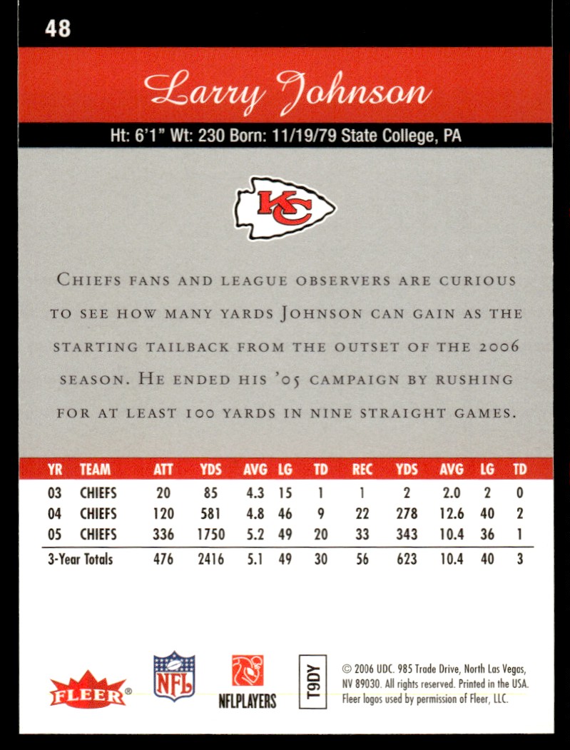 | 2006 Flair Showcase Larry Johnson Kansas City Chiefs #48 |