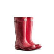 A mini version of the iconic Original Tall Boot, this kids rain boot is a dream for junior explorers. Handcrafted from natural rubber using a process unique to Hunter, the Original Kids Giant Glitter Boot adds a touch of sparkle to rainy days with a shimmering glitter finish. Designed for adventures, these specialized kids wellies are highly resistant to wear and abrasion with a recycled polyester lining for comfort. Reflective patches and the Hunter Original tread offer added safety so you can be confident letting them take on the elements whatever the weather.