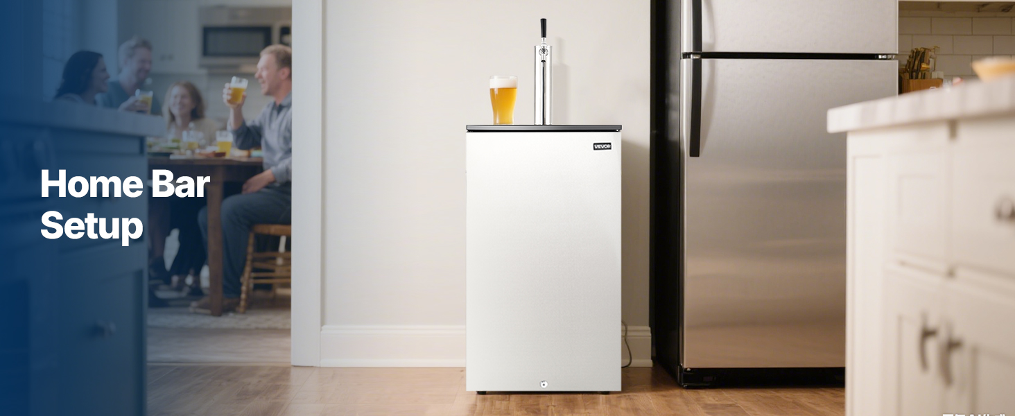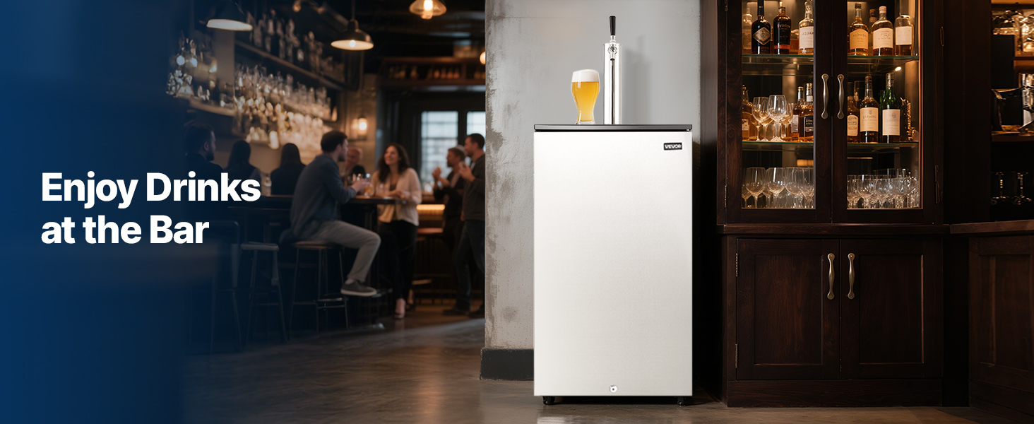 - Flawless Compatibility: This kegerator holds 1 sixth keg, seamlessly fitting into typical American home bars and small commercial pubs. It supports both internal and external CO₂ tank placement, offering dual setup modes for freestanding or built-in use, flexibly adapting to various layout needs