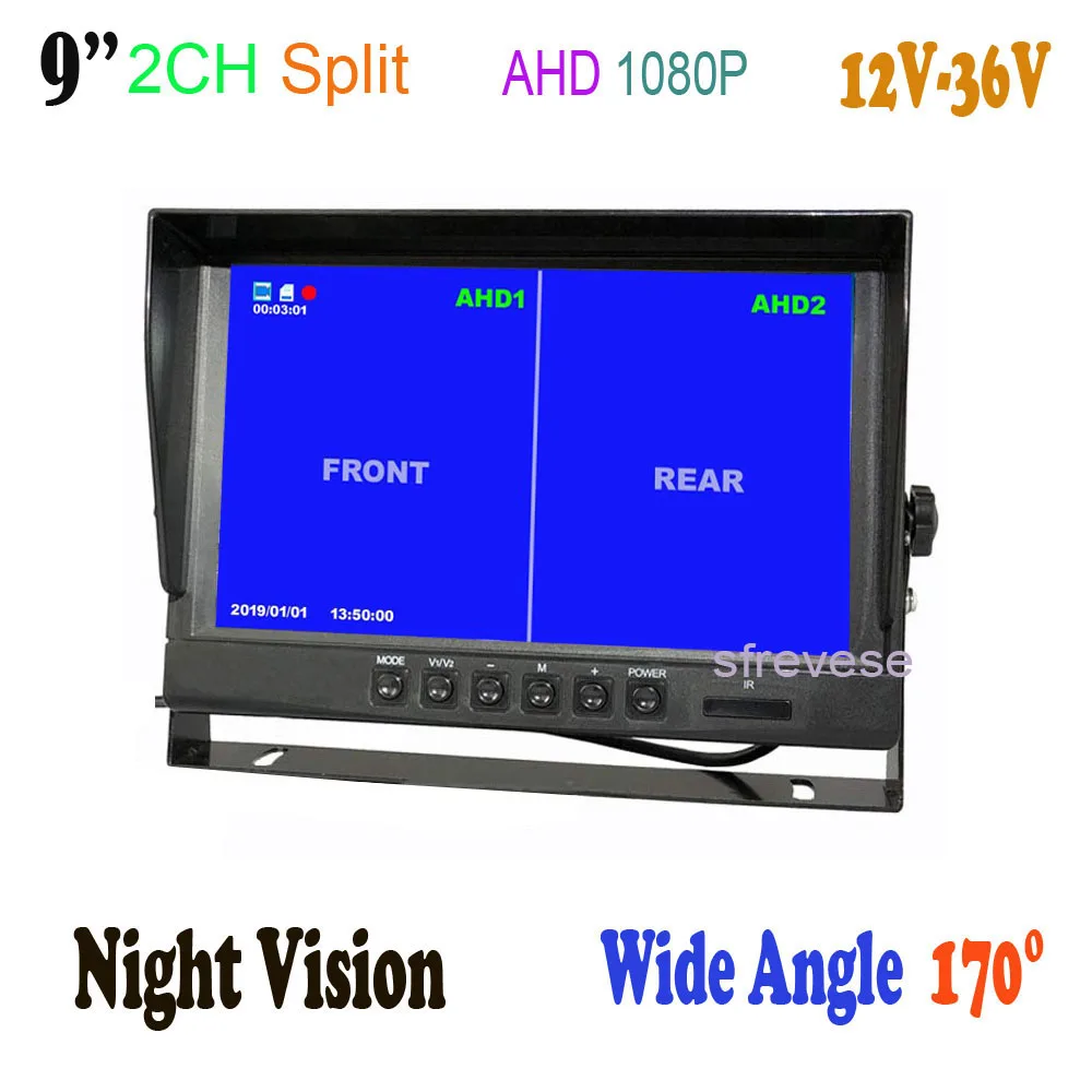 HD SD DVR Recording 2CH Split 4Pin Car Rear View Monitor + 18LED