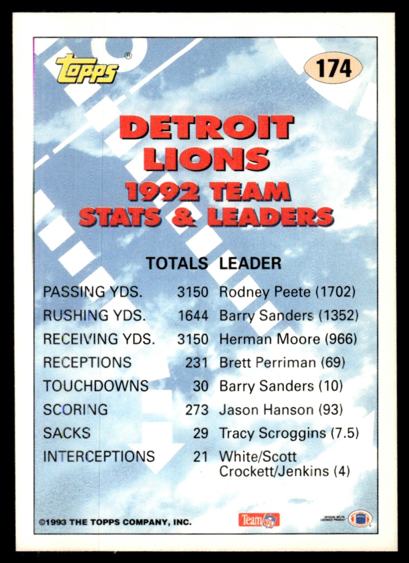 1993 Topps Barry Sanders Detroit Lions #174 TL