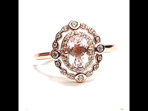 This gorgeous ring was inspired by the Victorian era. It's made with a lovely pale pink morganite in the center with sparkling cubics set all around it.
