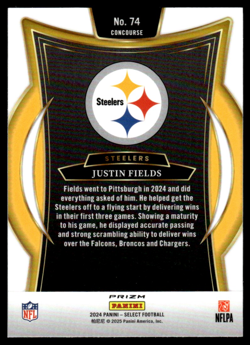 2024 Panini Select Black & Red Prizm Shock Justin Fields Concourse Pittsburgh