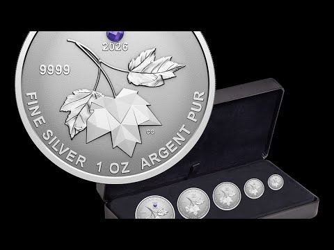 | Marking what would have been the 100th birthday of Queen Elizabeth II, the 2026 fine silver fractional set honours a monarch whose dedication to duty earned the enduring respect and affection of generations of Canadians. Each coin’s reverse features the classic‑meets‑modern representation of Canadian maple leaves, while the double‑effigy obverse serves to both honour the past and acknowledge the continuity of the Crown. The 1 oz. coin’s purple crystal adds a regal hue to this tribute to the long‑reigning sovereign, whose steady presence helped shape Canada’s identity in the modern era. |