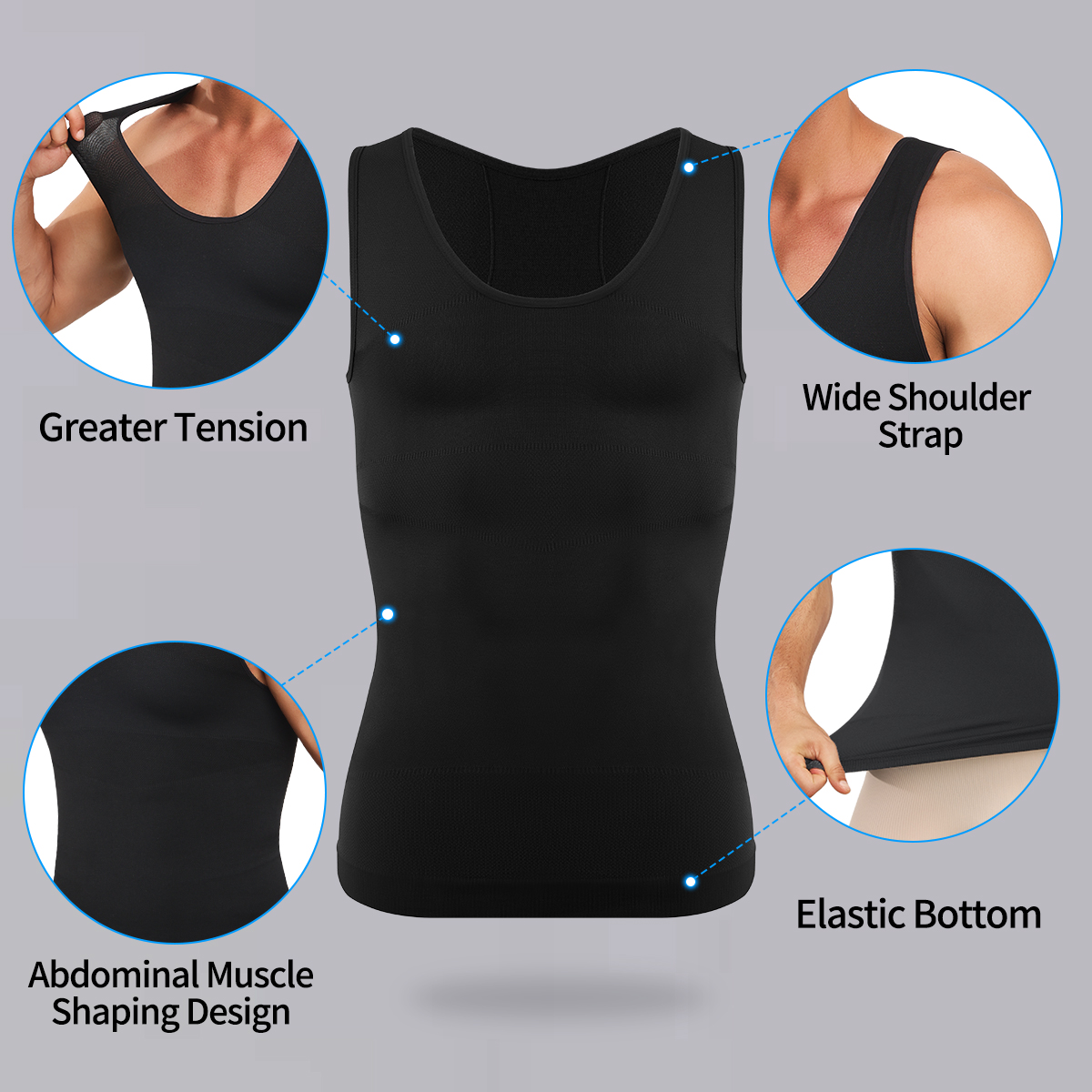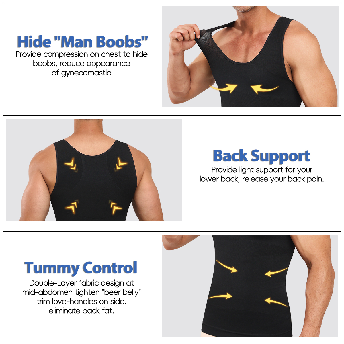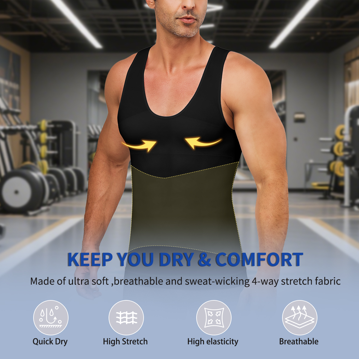 Fat Burning Assistant:Wearing this mens shirts slim ,easily shape your chest ,waist and stomach,our tank shirt is specifically designed to reduce the appearance of Gynecomastia ,hide "man boobs",deal with "beer belly".Breathable for improving blood circulation and fat burning, and strongly chest shaping while workout or gym.