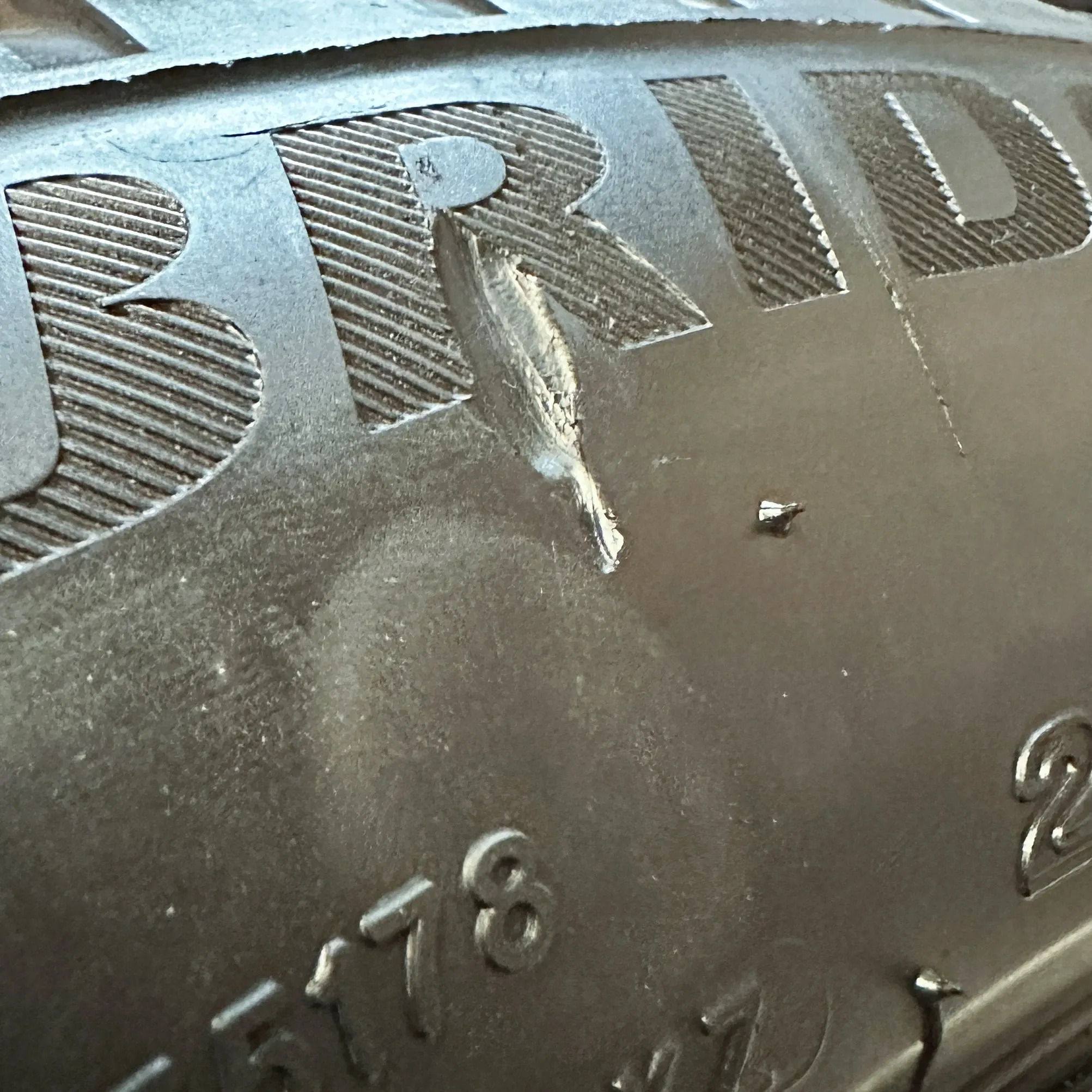 Ein Reifen hat eine kleine Beschädigungen.