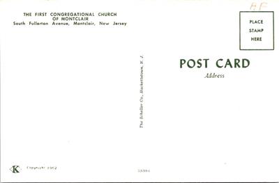 Montclair, NJ New Jersey FIRST CONGREGATIONAL CHURCH 1962 Religion Postcard
