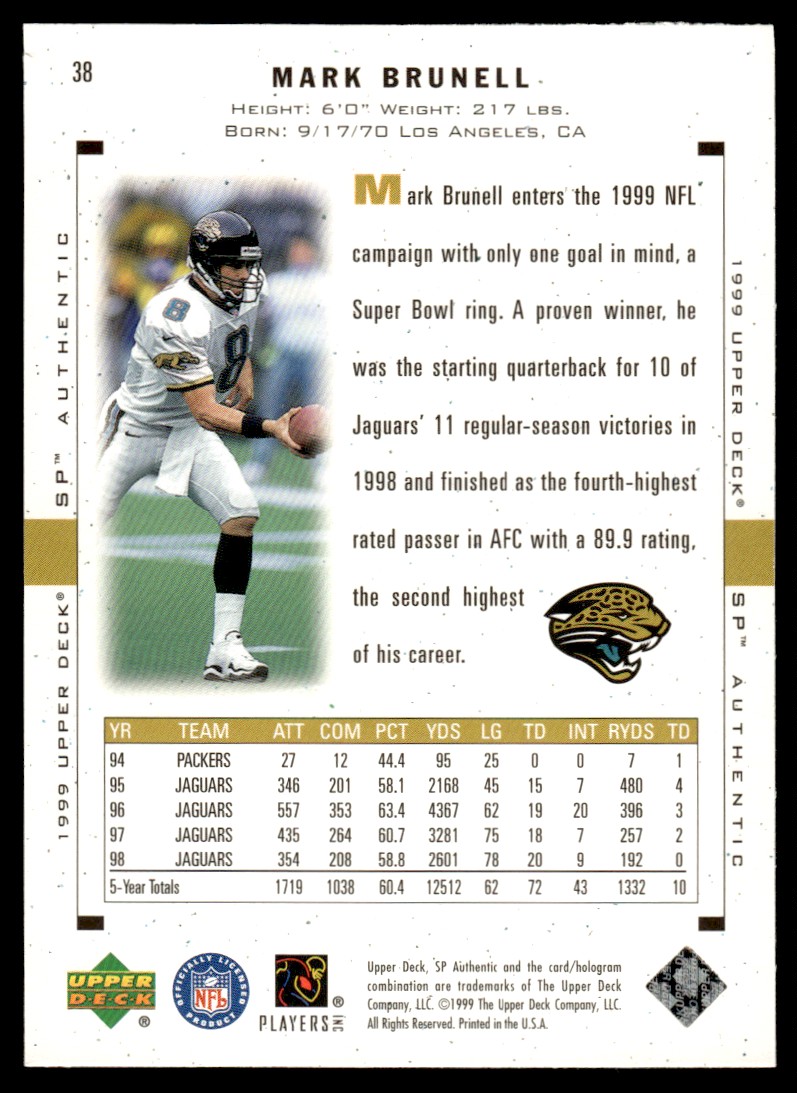 | 1999 SP Authentic Mark Brunell Jacksonville Jaguars #38 B |