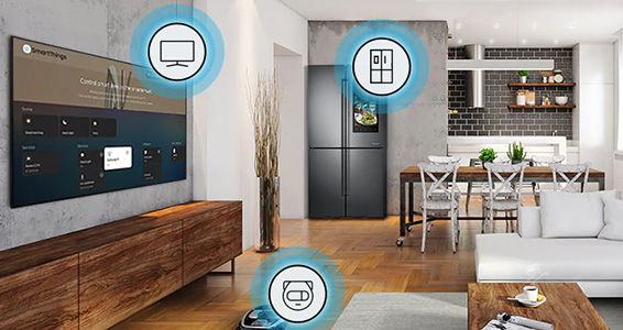 Der erste Schritt ins Smart Home: QLED Da dein QLED-TV mit der SmartThings App kompatibel ist, kannst du dein Smart Home ganz einfach koordinieren. Steuere mit dem QLED-TV deine kompatiblen Lampen oder synchronisiere deinen QLED mit deinen bevorzugten SmartHome-Geräten, wie dem Kühlschrank. Erlebe eine vernetzte Welt.