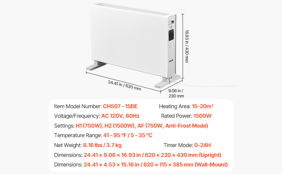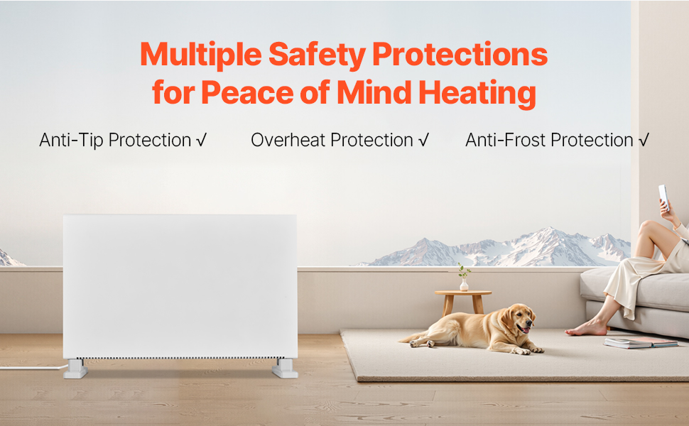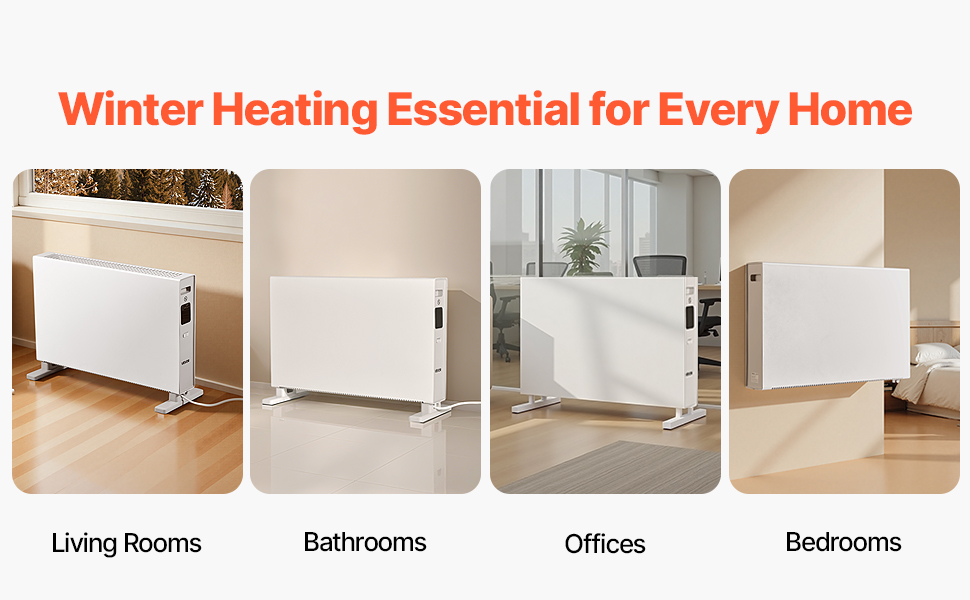Equipped with high-quality heating wires for powerful performance, this convection panel heater quickly warms large rooms. It provides two convenient control options—touchscreen and wireless remote—making it easy to adjust temperature and heating modes. It can be used both as a freestanding unit or wall-mounted, ideal for the living room, kitchen, bedroom, or office. With multiple safety protection features, it ensures peace of mind during use.